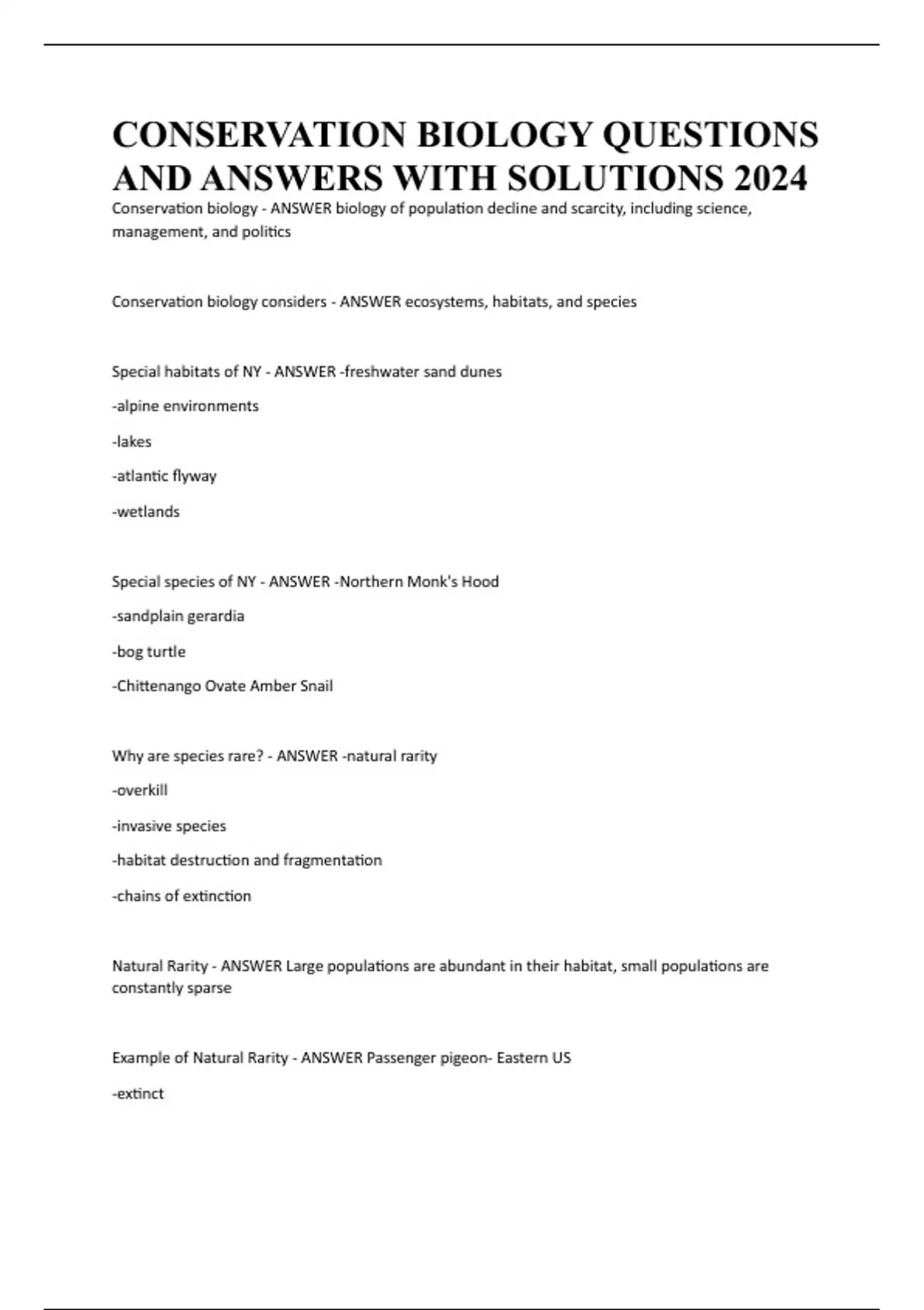 CONSERVATION BIOLOGY QUESTIONS AND ANSWERS WITH SOLUTIONS 2024