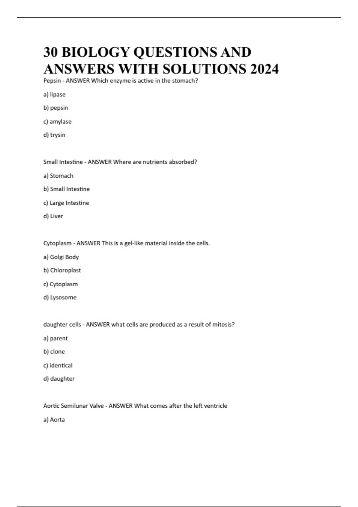 30 BIOLOGY QUESTIONS AND ANSWERS WITH SOLUTIONS 2024
