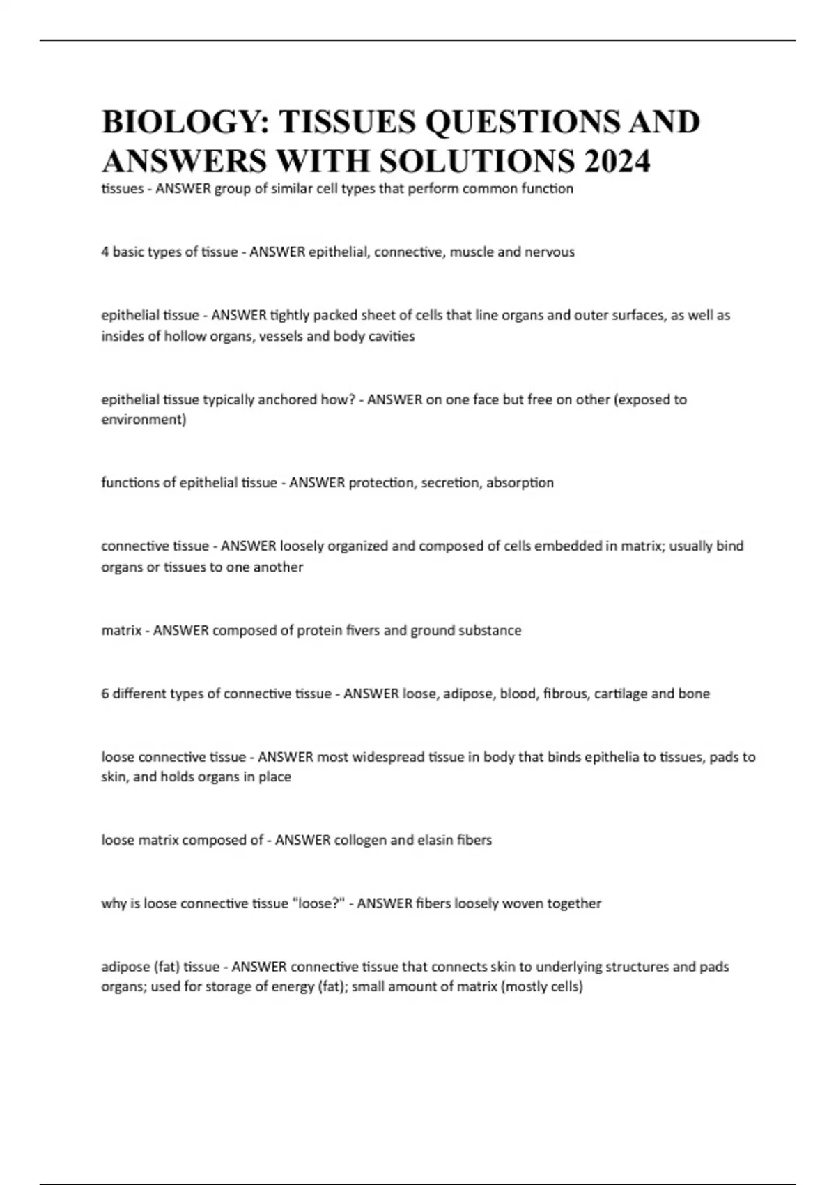 BIOLOGY: TISSUES QUESTIONS AND ANSWERS WITH SOLUTIONS 2024