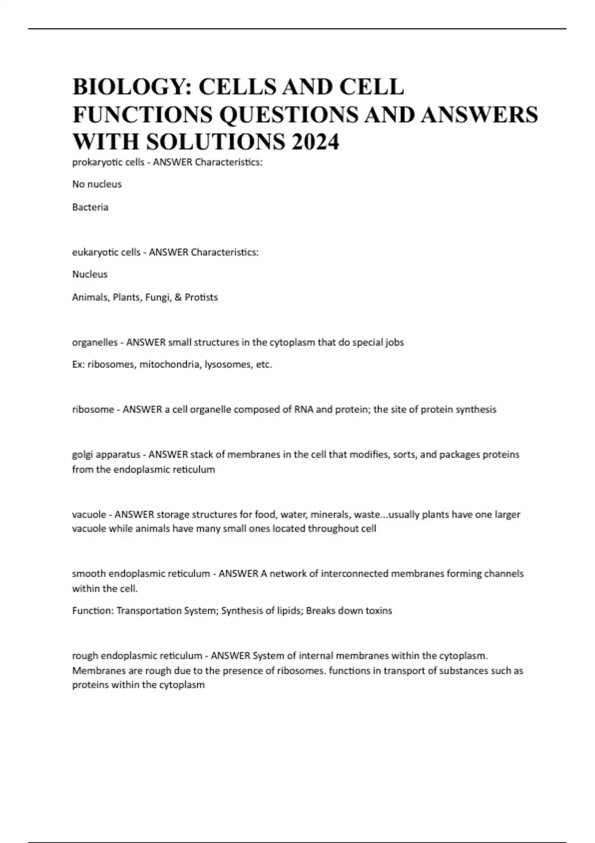 BIOLOGY: CELLS AND CELL FUNCTIONS QUESTIONS AND ANSWERS WITH SOLUTIONS 2024