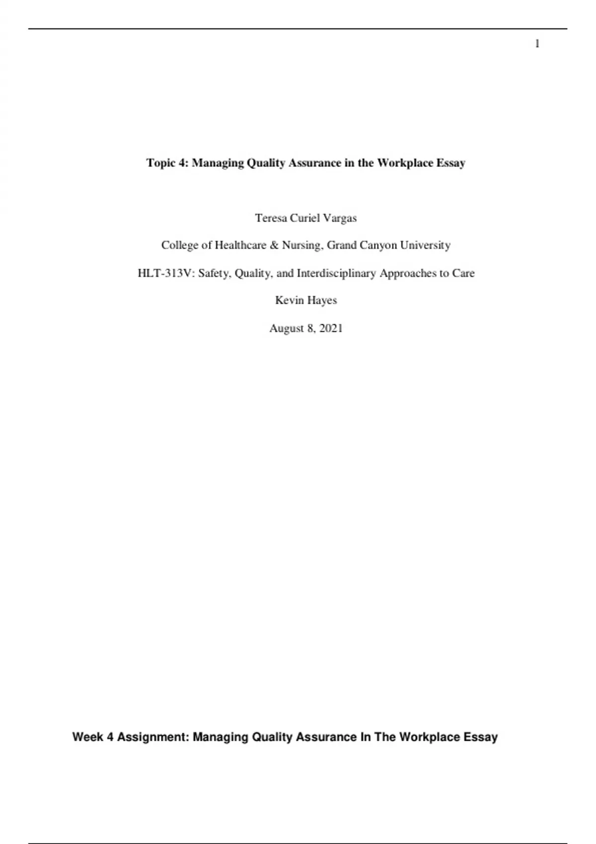 WEEK 4 ASSIGNMENT: MANAGING QUALITY ASSURANCE IN THE WORKPLACE ESSAY