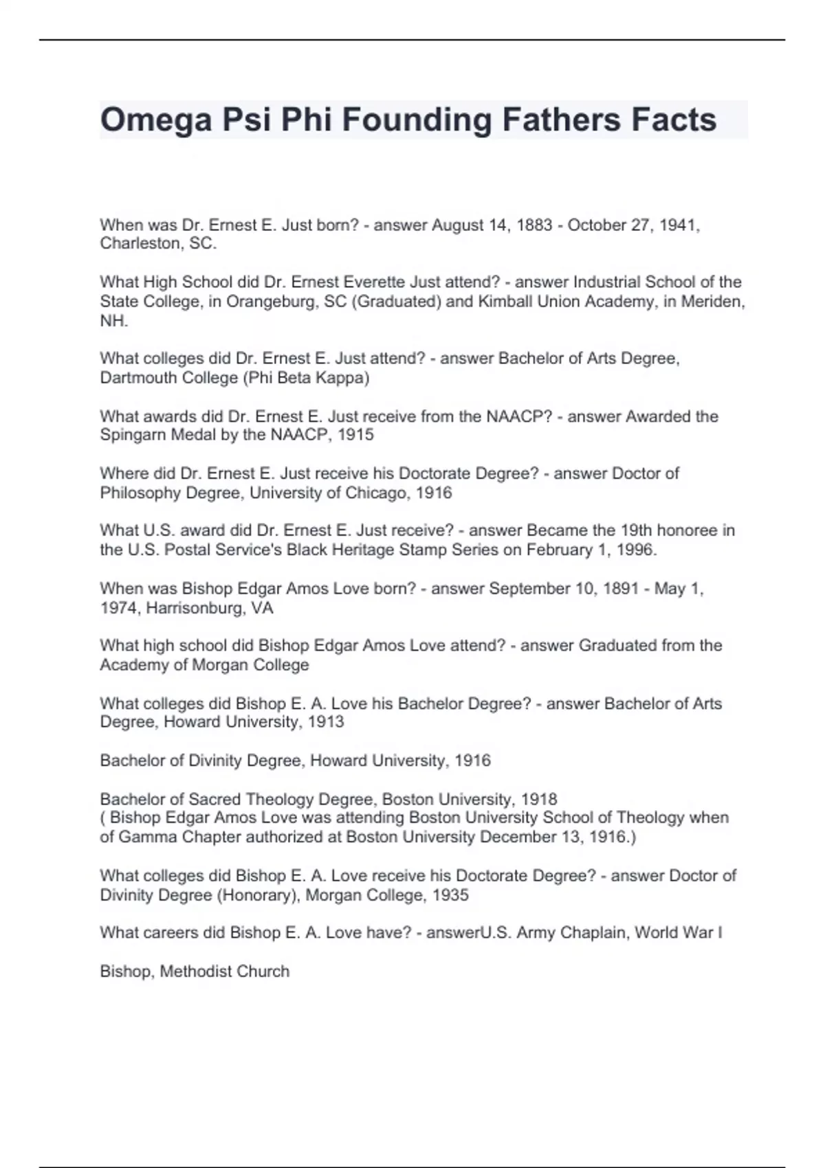 Omega Psi Phi Founding Fathers Facts Questions with correct Answers