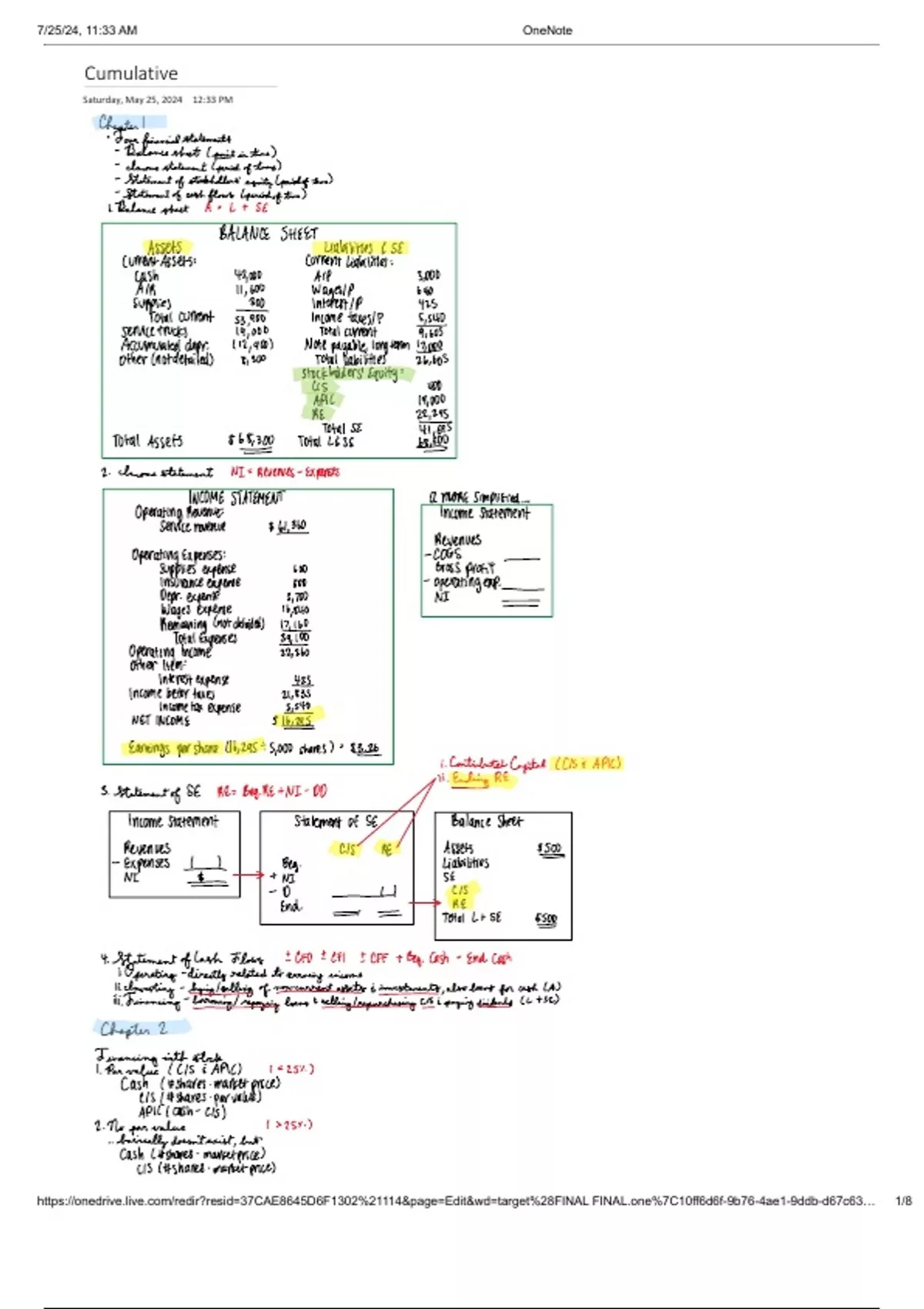 Summary Cumulative Notes for ACCTG 215