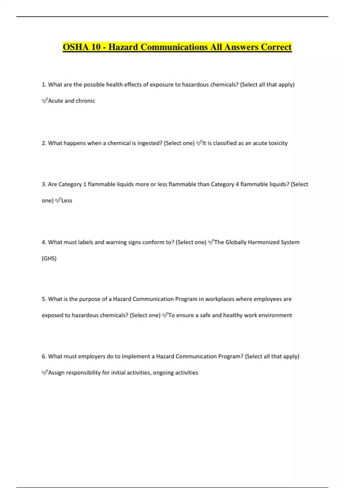 exposed to hazardous chemicals? (Select one) ✅To ensure a safe and healthy work environment