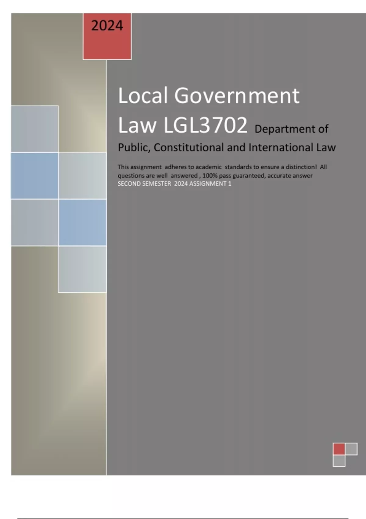, Local Government Law LGL3702 Semester 2 This letter contains the first assignment