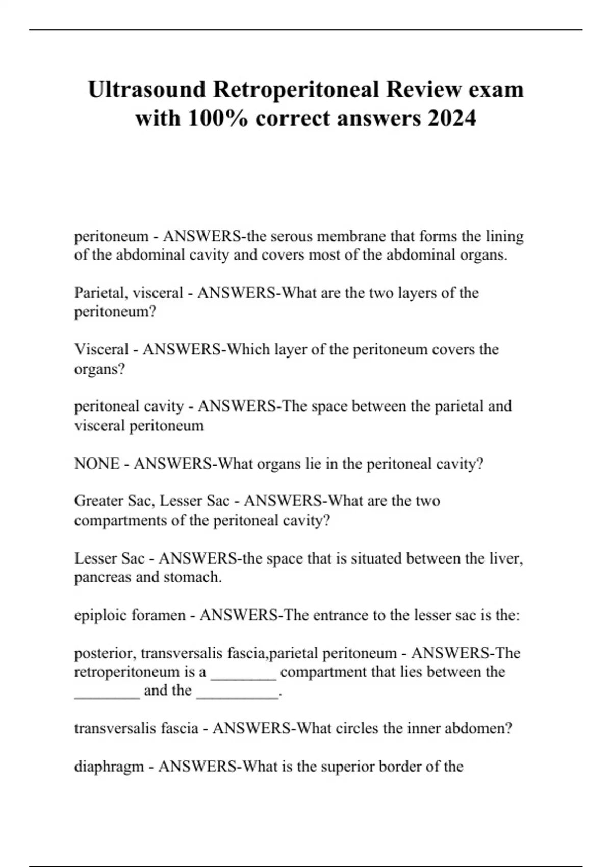Ultrasound Retroperitoneal Review exam with 100- correct answers 2024