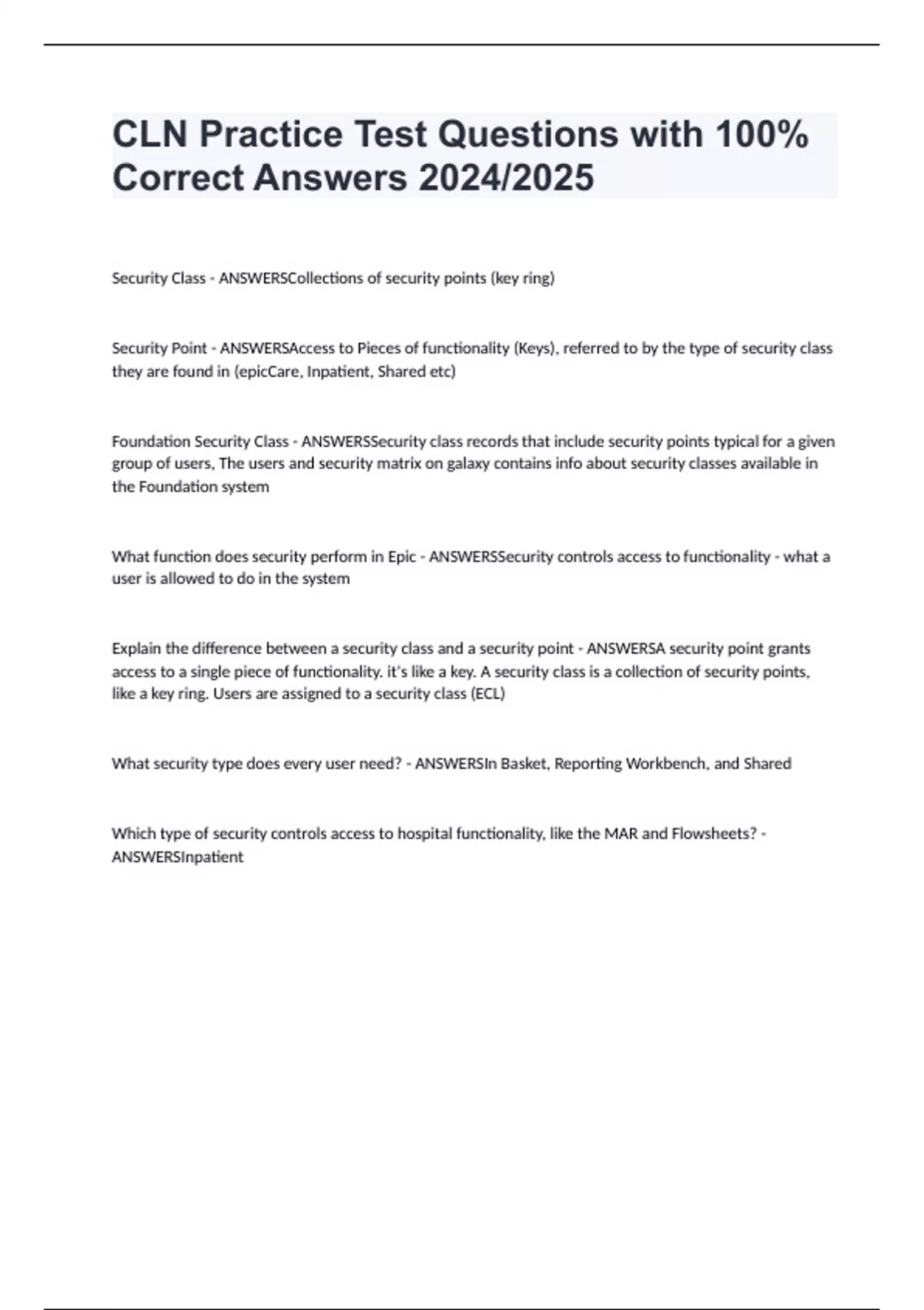 CLN Practice Test Questions with 100% Correct Answers 2024/2025