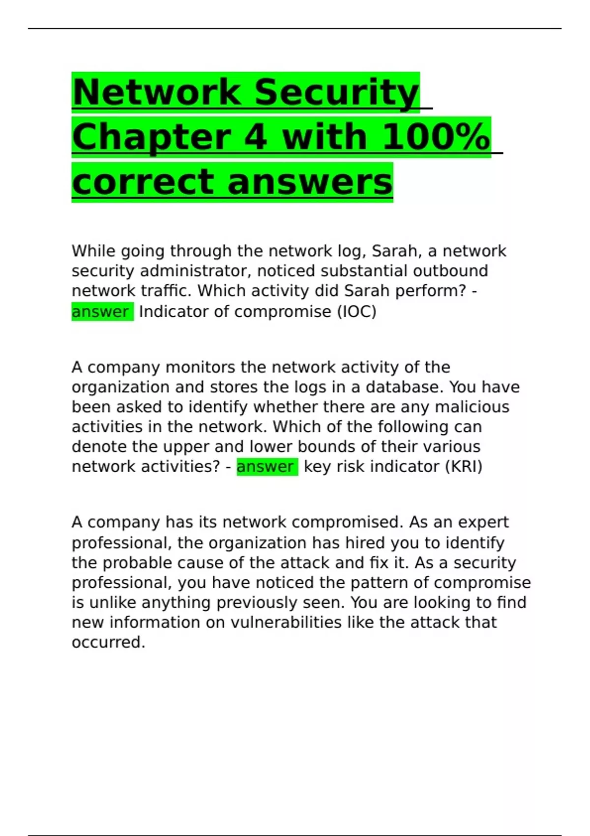 Network Security Chapter 4 with 100% correct answers