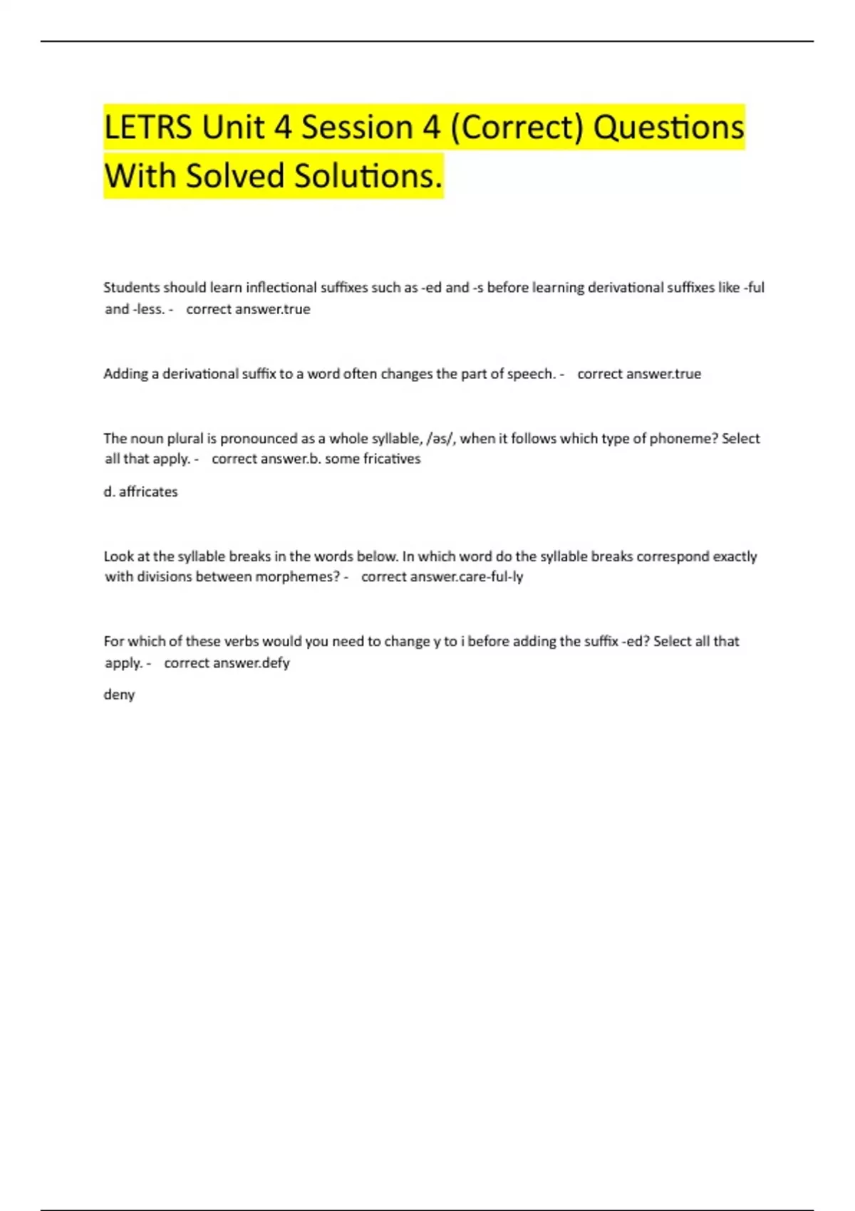 LETRS Unit 4 Session 4 (Correct) Questions With Solved Solutions.