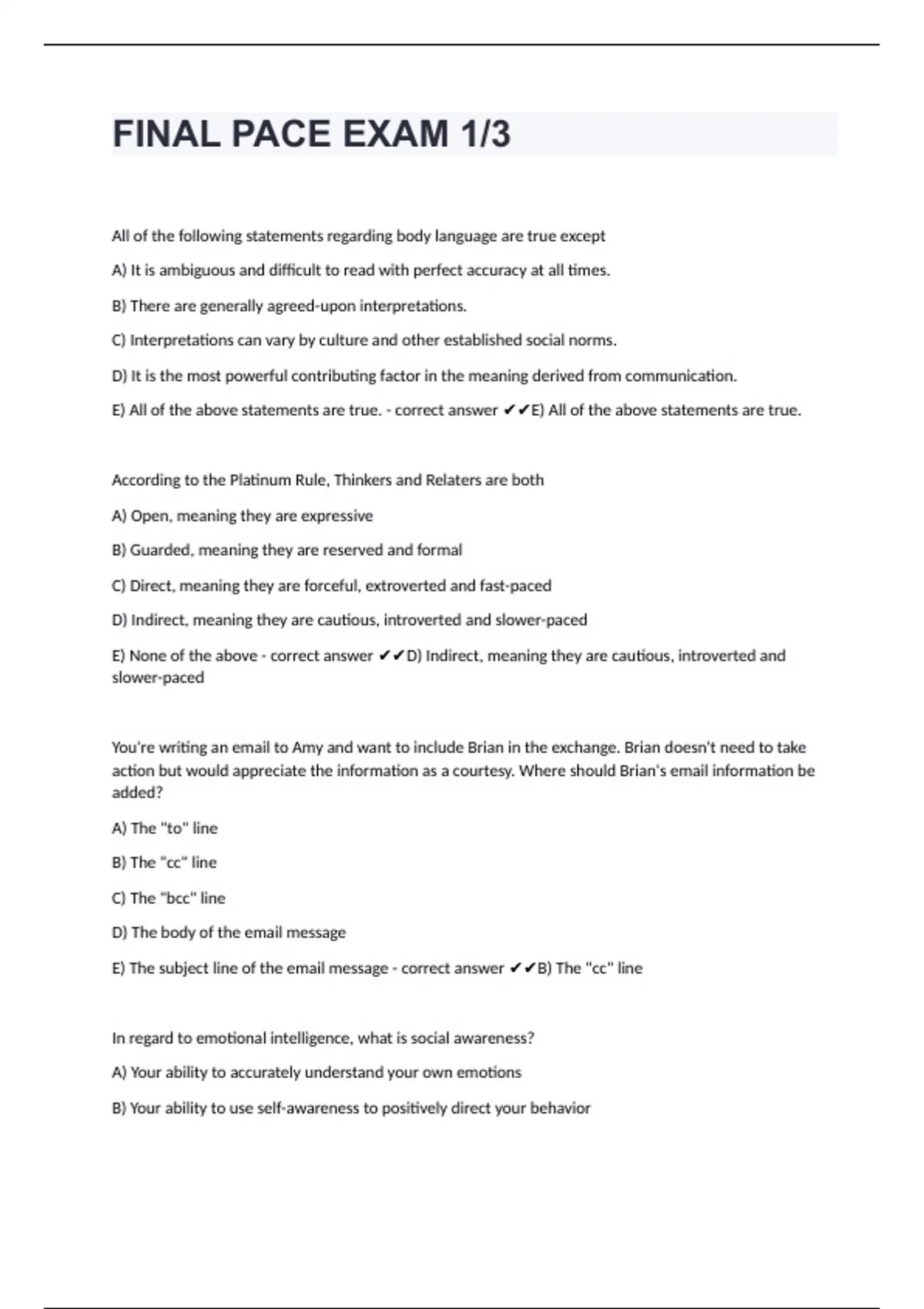 FINAL PACE EXAM 1/3 questions with 100% correct answers