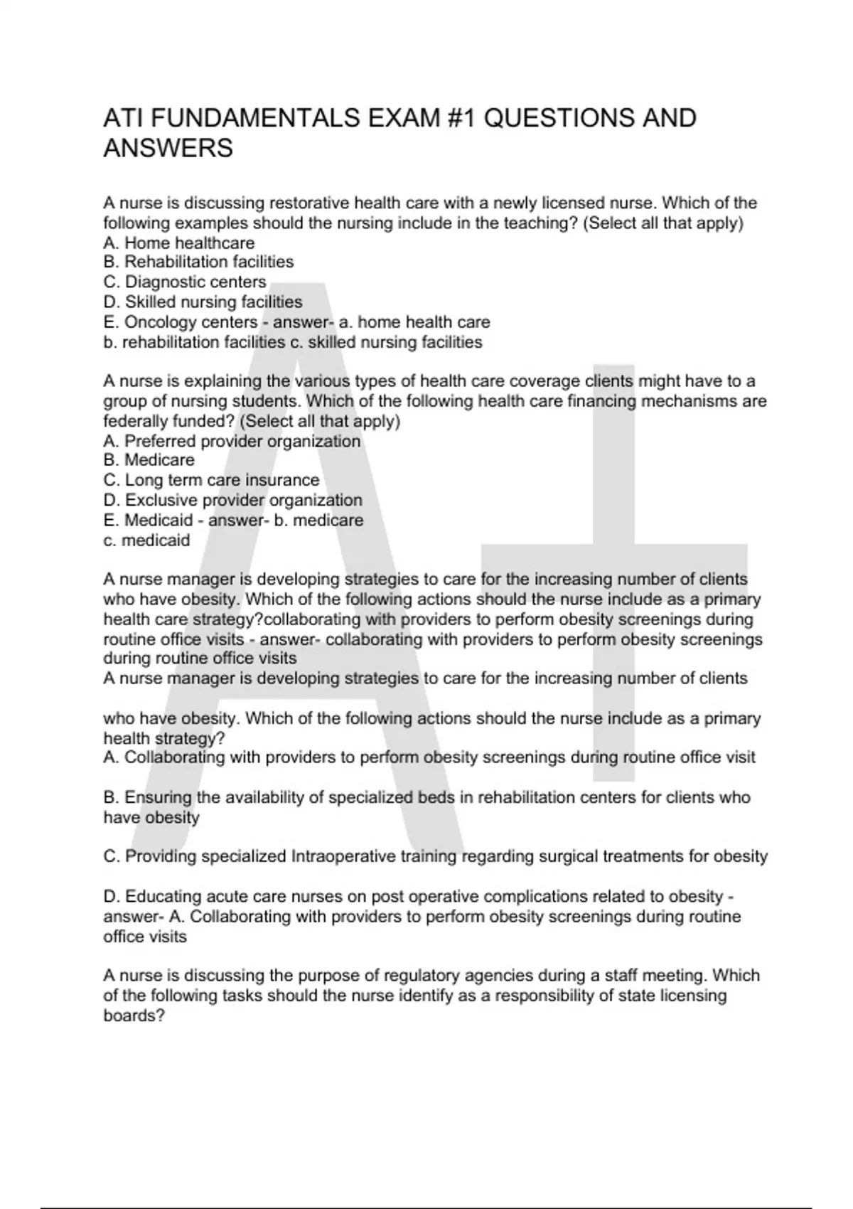 ATI FUNDAMENTALS EXAM #1 QUESTIONS AND ANSWERS 2024