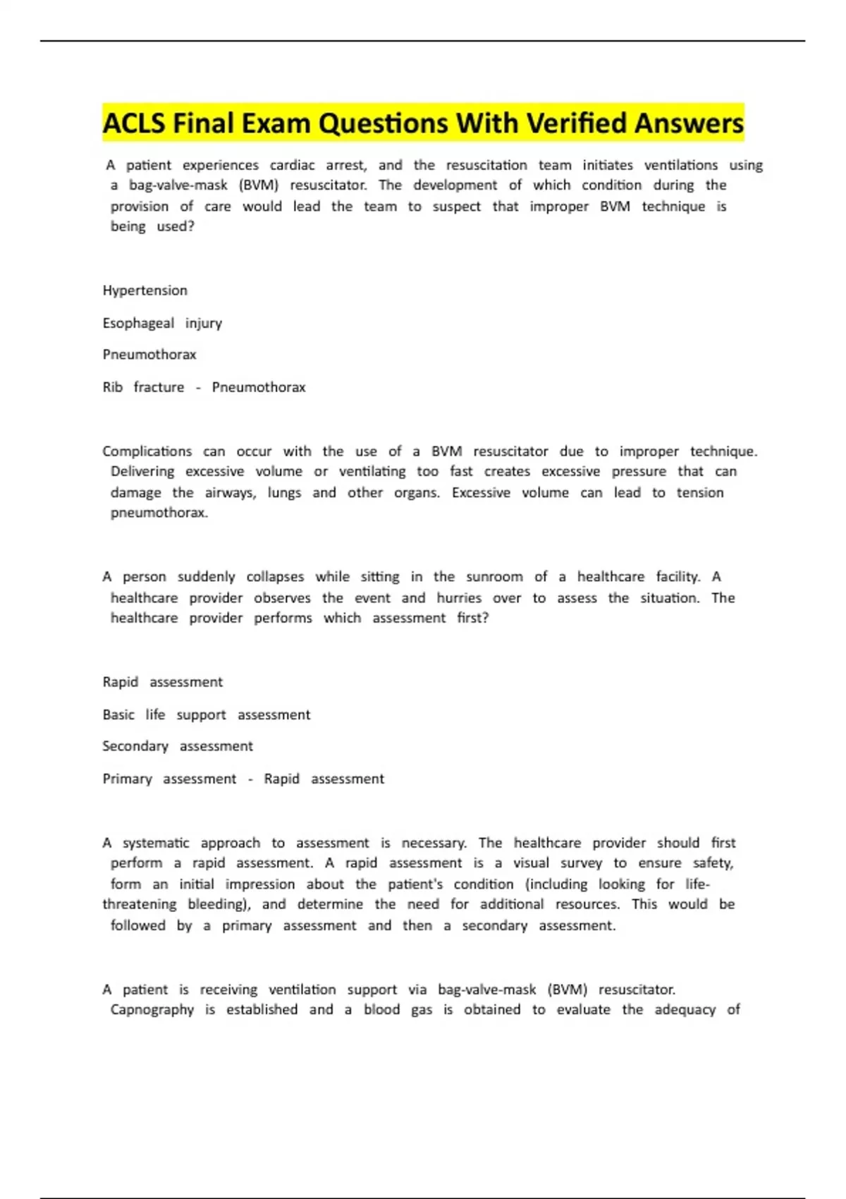 Exam of 24 pages for the course ACLS at ACLS (ACLS Final Exam)