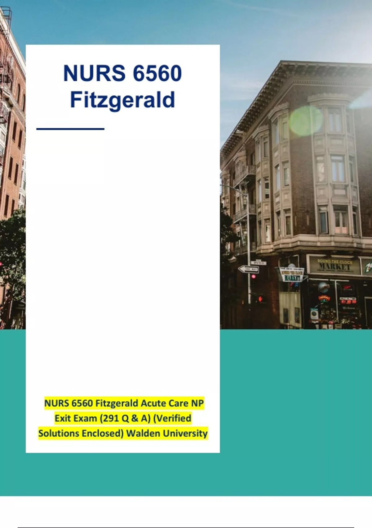 NURS 6560 Fitzgerald Acute Care NP Exit Exam (291 Q & A) (Verified Solutions Enclosed) Walden University