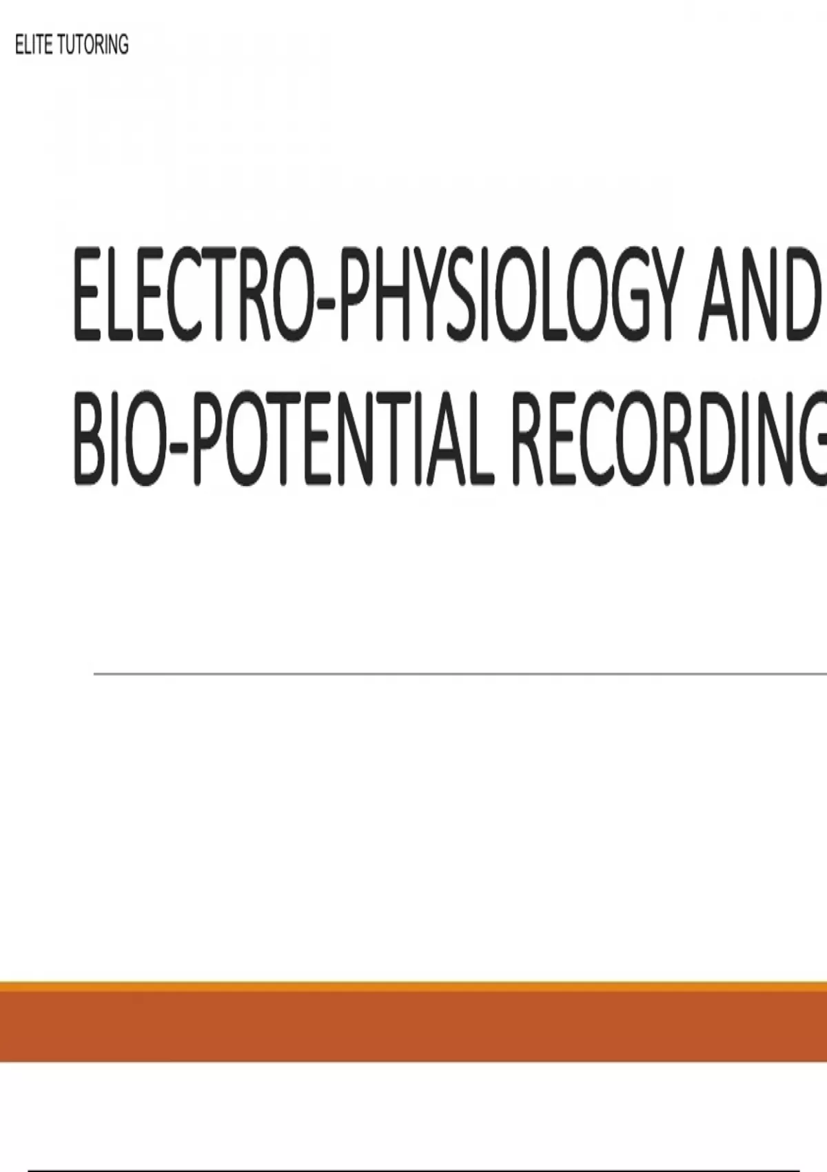 The document covers electrophysiology and bio-potential recording, detailing the measurement of electrical activity in biological tissues. It explains techniques for recording heart, muscle, and neural activity using ECG, EMG, and EEG. Practical examples highlight their diagnostic applications. Emphasis is placed on accuracy, signal processing, and advancements in recording technologies for improved patient care.