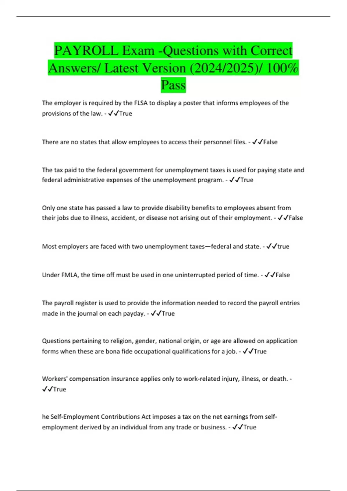 PAYROLL Exam -Questions with Correct Answers/ Latest Version (2024/2025)/ 100% Pass