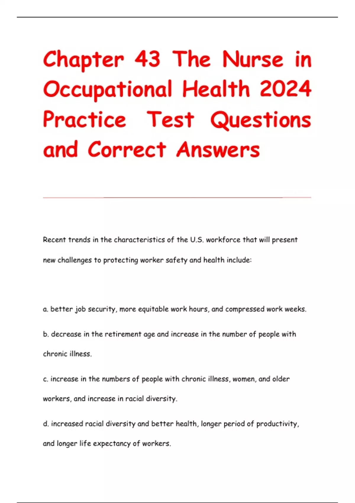ch 43 nursing in occupational health 2024 questi