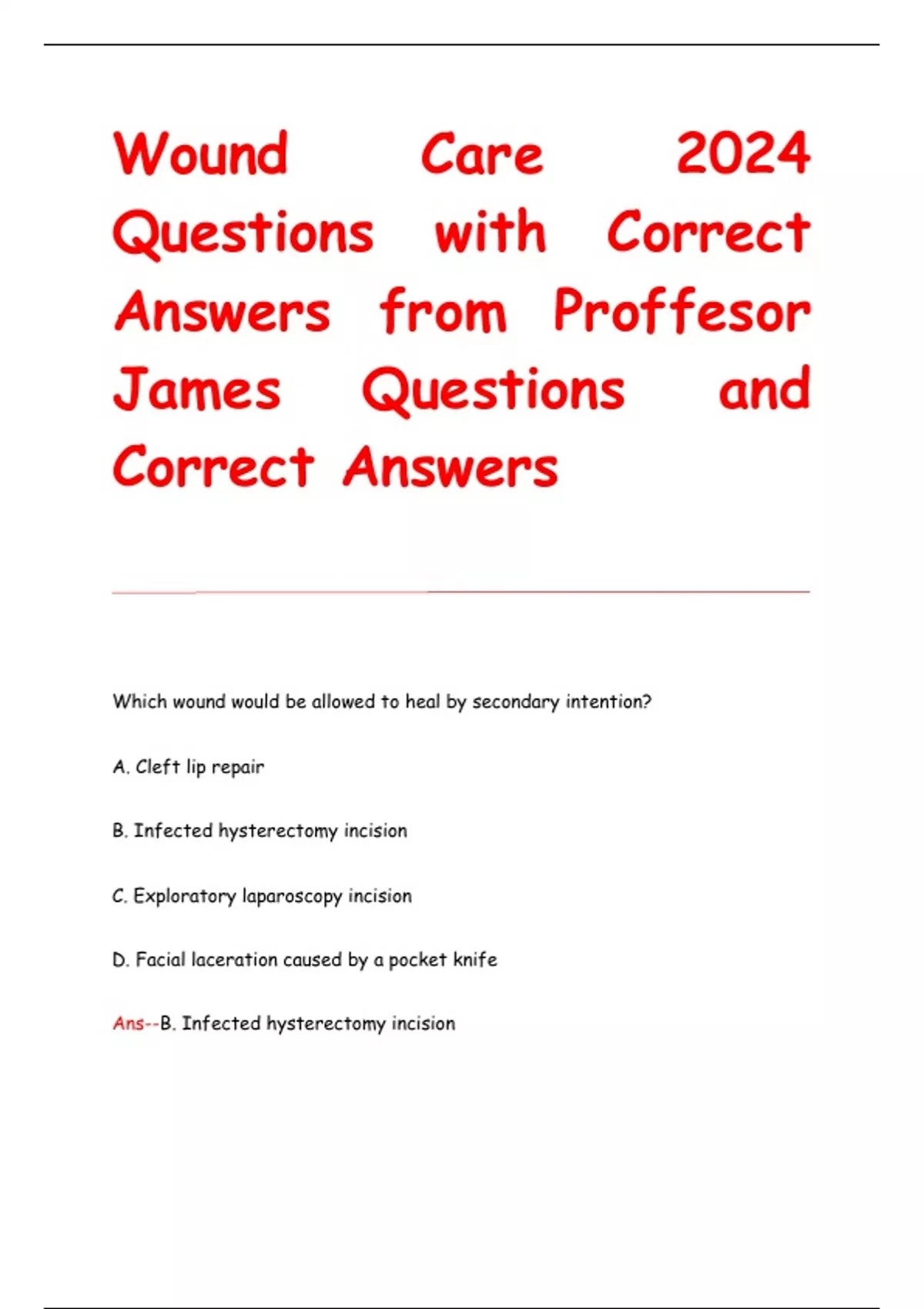 Wound Care 2024 Questions with Correct Answers from Proffesor James Questions and Correct Answers