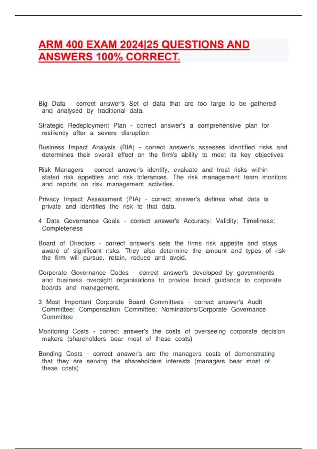 ARM 400 EXAM 2024|25 QUESTIONS AND ANSWERS 100% CORRECT.
