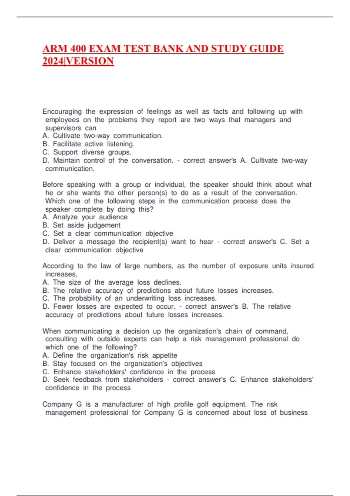 arm 400 exam test bank and study guide 2024versio