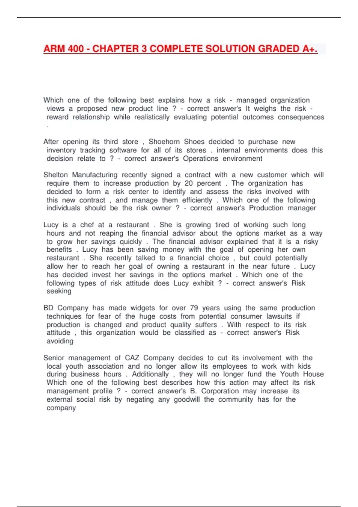 ARM 400 - CHAPTER 3 COMPLETE SOLUTION GRADED A+.