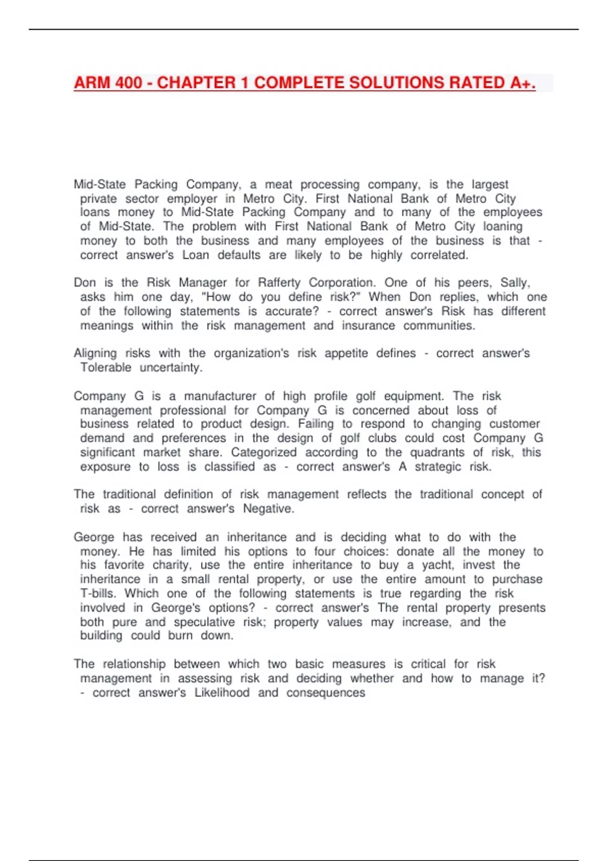 arm 400 chapter 1 complete solutions rated a