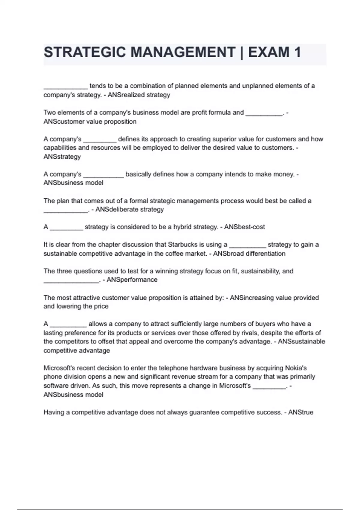 STRATEGIC MANAGEMENT | EXAM 1 questions and answers graded A+ 2024/2025