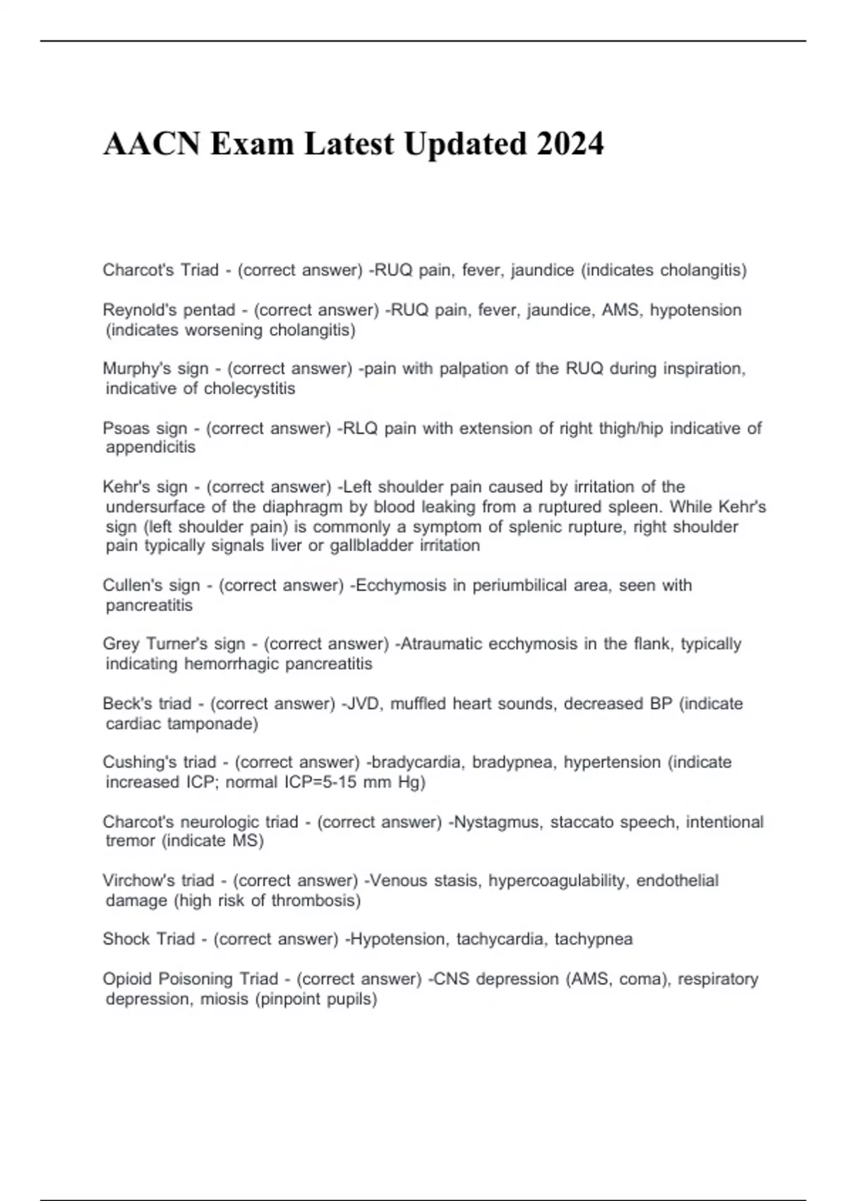 AACN Exam Latest Updated 2024