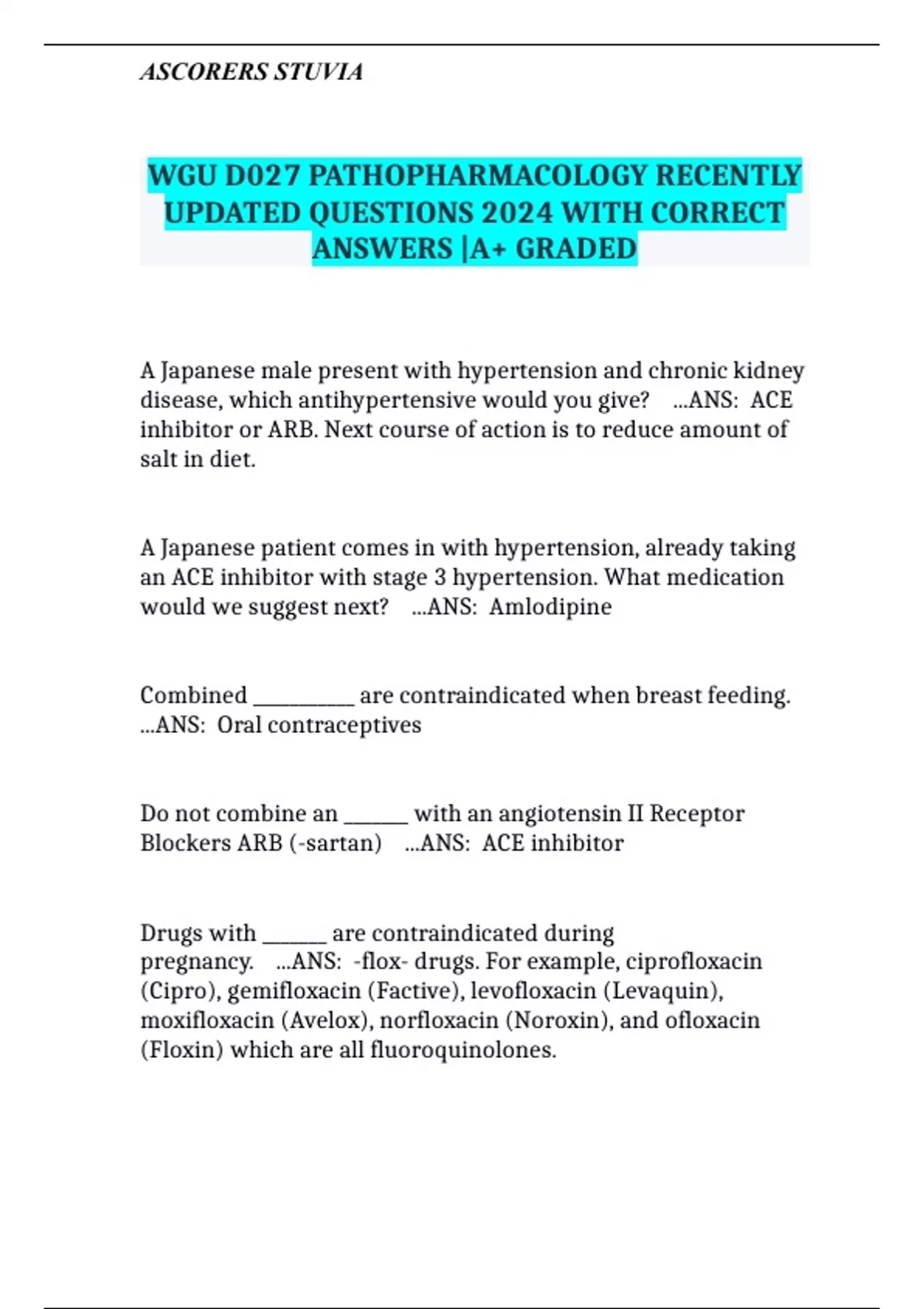 WGU D027 PATHOPHARMACOLOGY RECENTLY UPDATED QUESTIONS 2024 WITH CORRECT ANSWERS |A+ GRADED