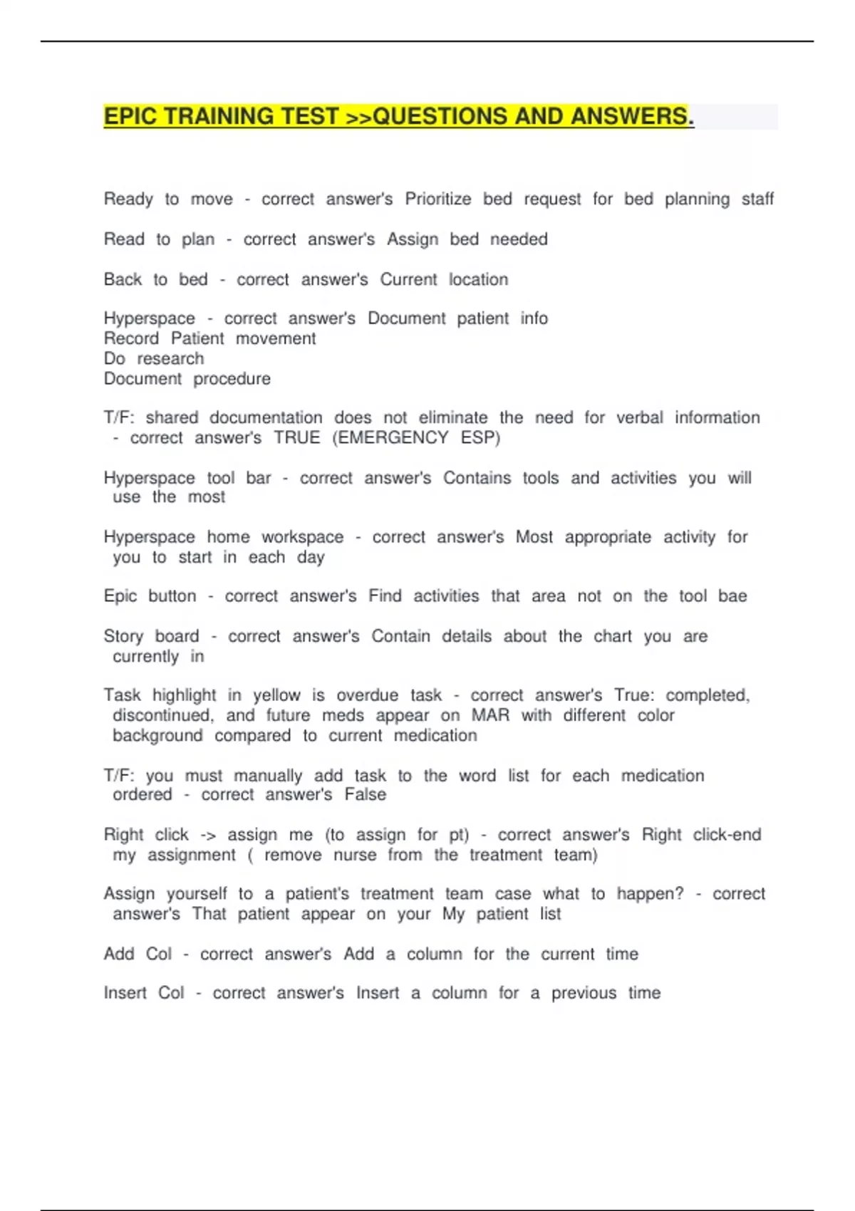 EPIC TRAINING TEST >>QUESTIONS AND ANSWERS.