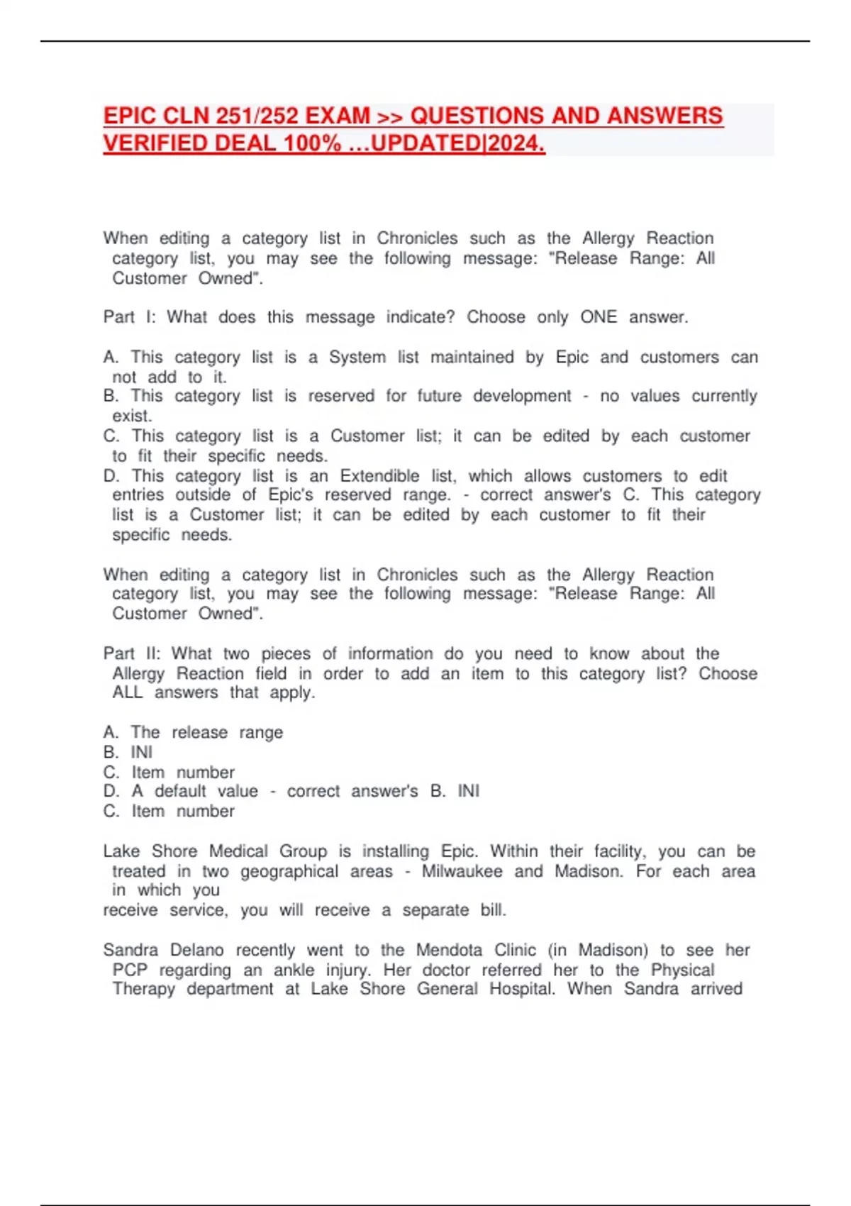 EPIC CLN 251/252 EXAM >> QUESTIONS AND ANSWERS VERIFIED DEAL 100% …UPDATED|2024.