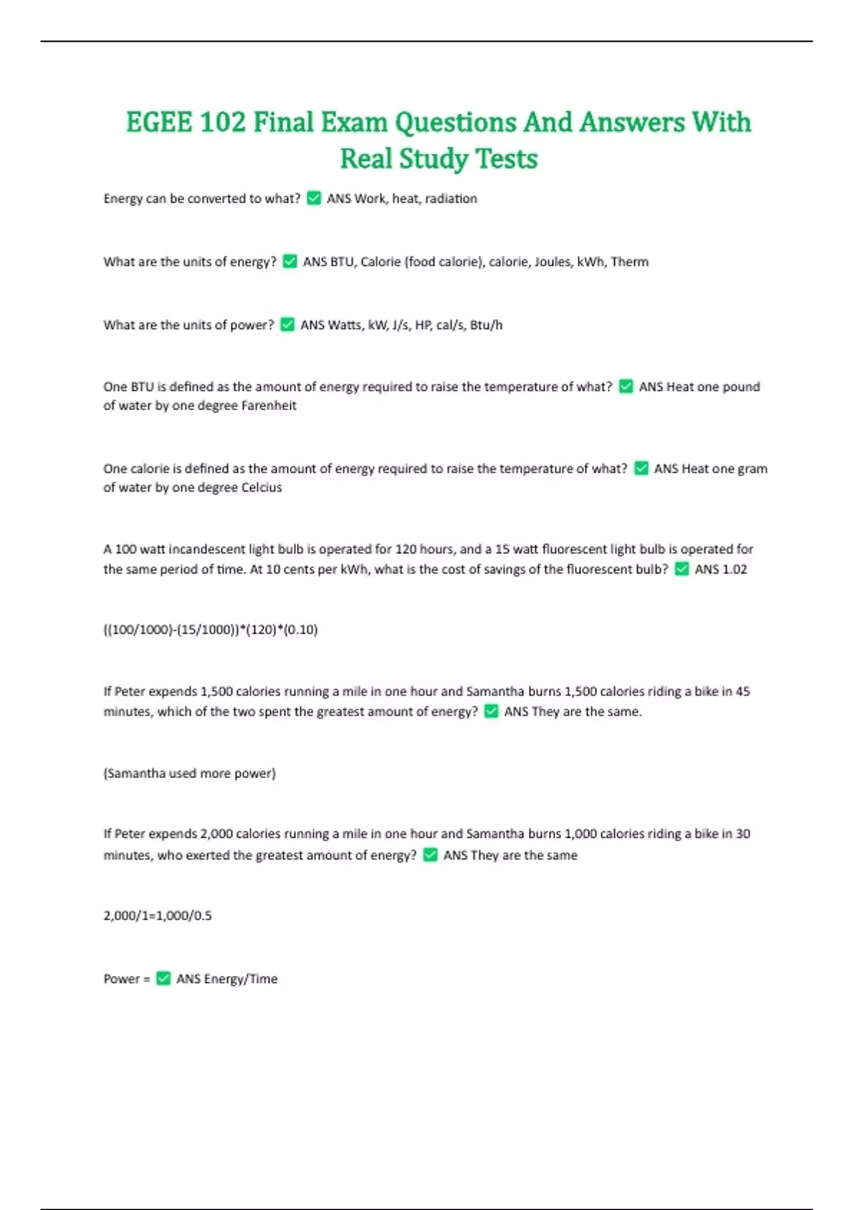 EGEE 102 Final Exam Questions And Answers With Real Study Tests
