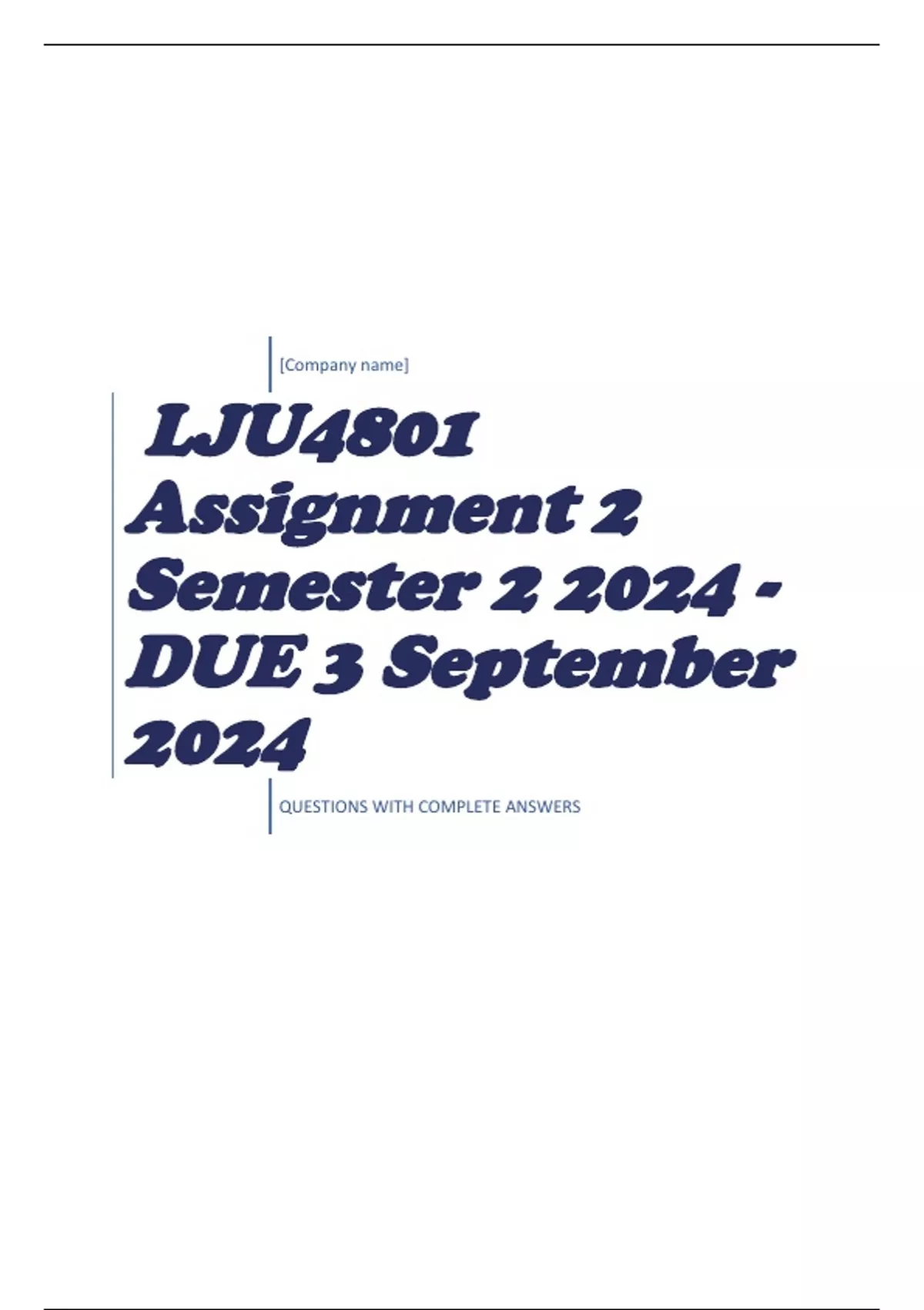 LJU4801 Assignment 2 Semester 2 2024 - DUE 3 September 2024 QUESTIONS WITH COMPLETE ANSWERS