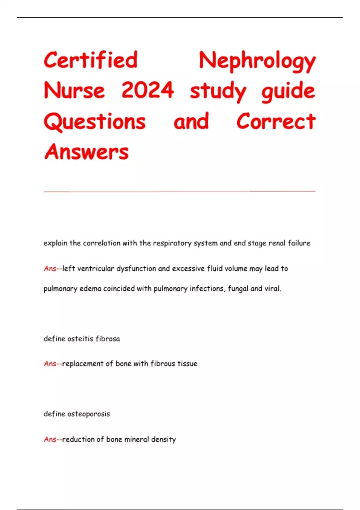 Certified Nephrology Nurse 2024 study guide Questions and Correct Answers