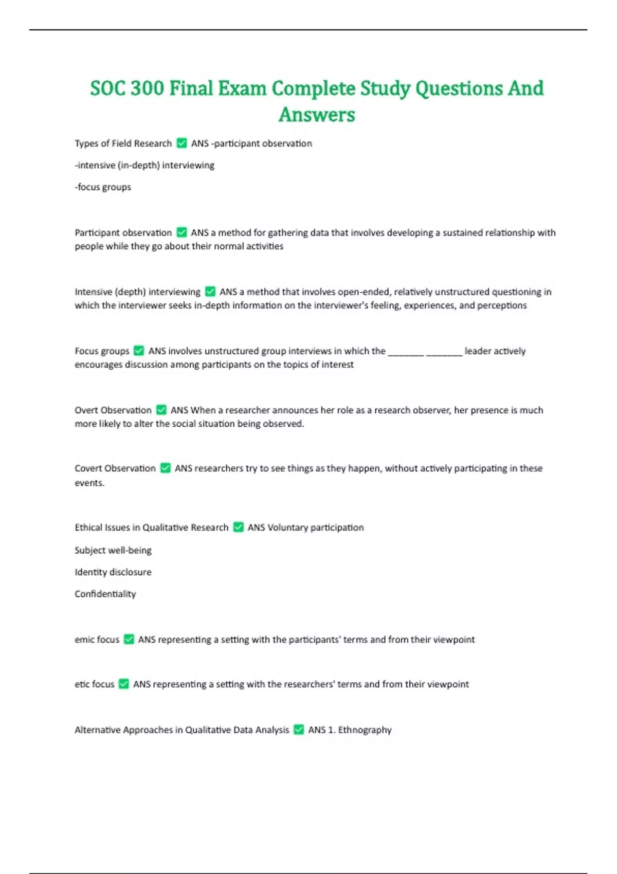 soc 300 final exam complete study questions and an