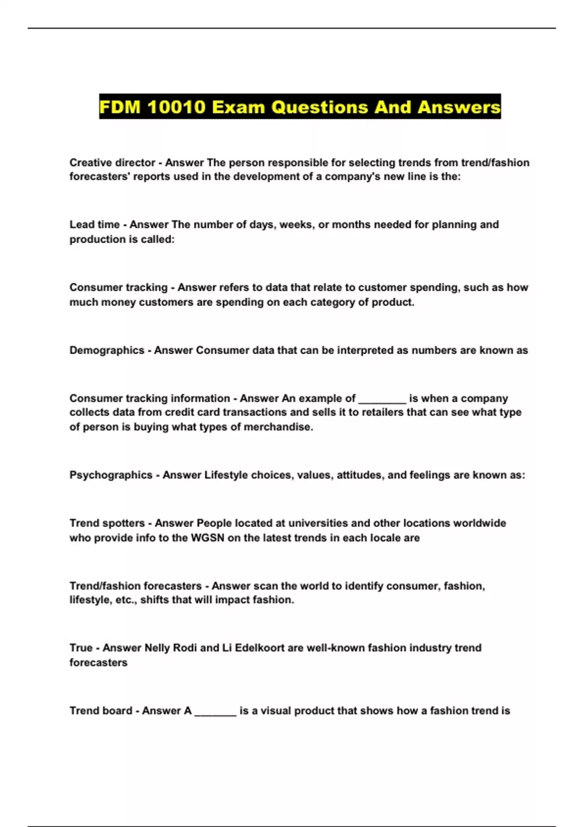FDM 10010 Exam Questions And Answers...