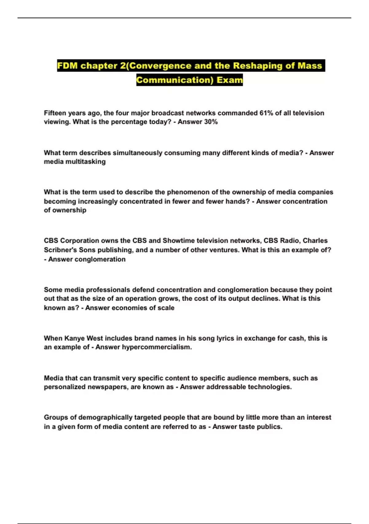 FDM chapter 2(Convergence and the Reshaping of Mass Communication) Exam...
