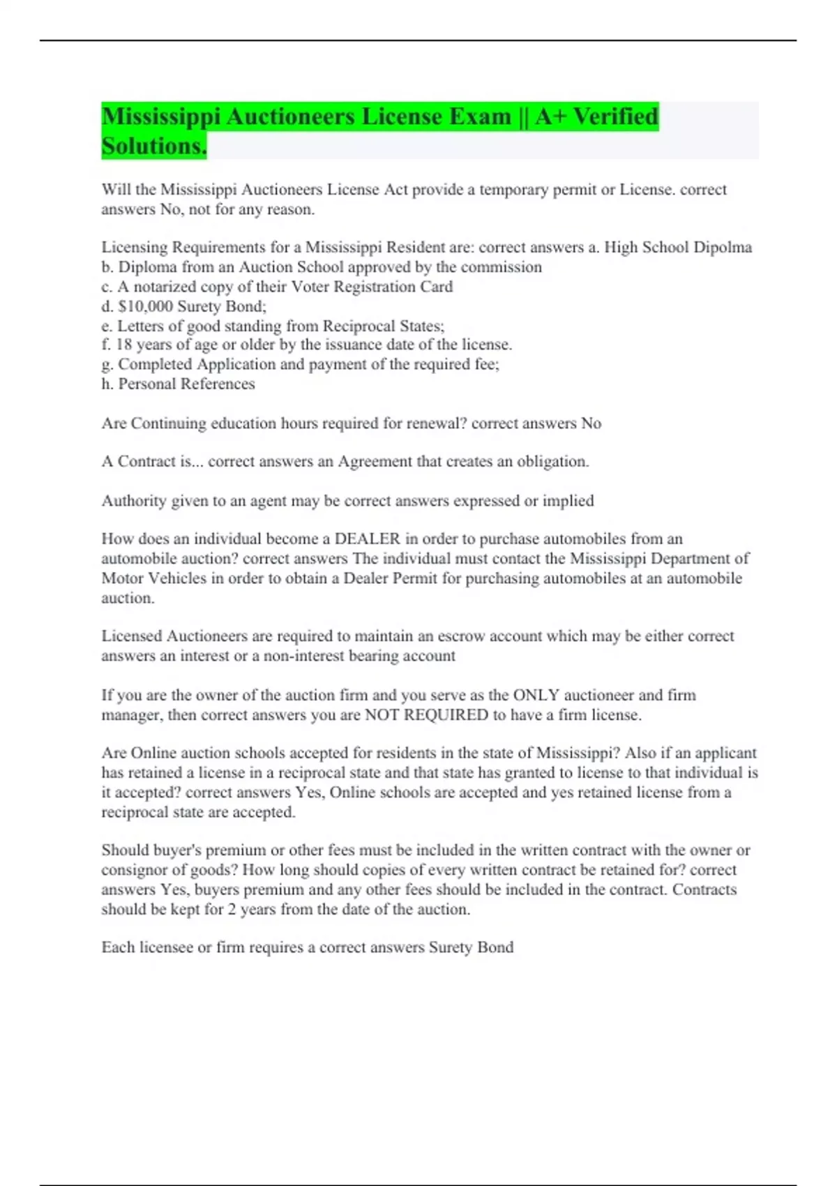 Mississippi Auctioneers License Exam || A+ Verified Solutions.