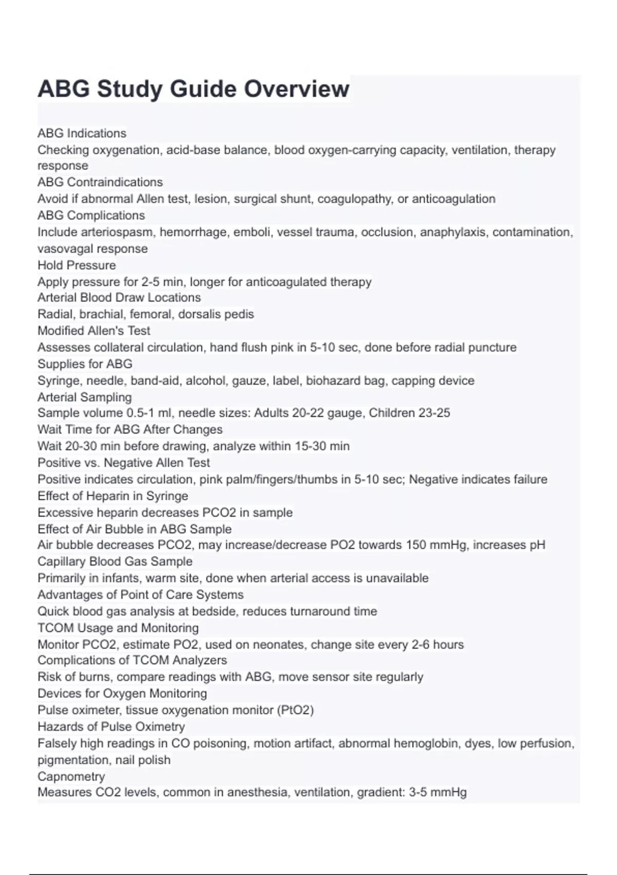 ABG Study Guide Overview |Questions with 100% Correct Answers | Updated | Guaranteed A+