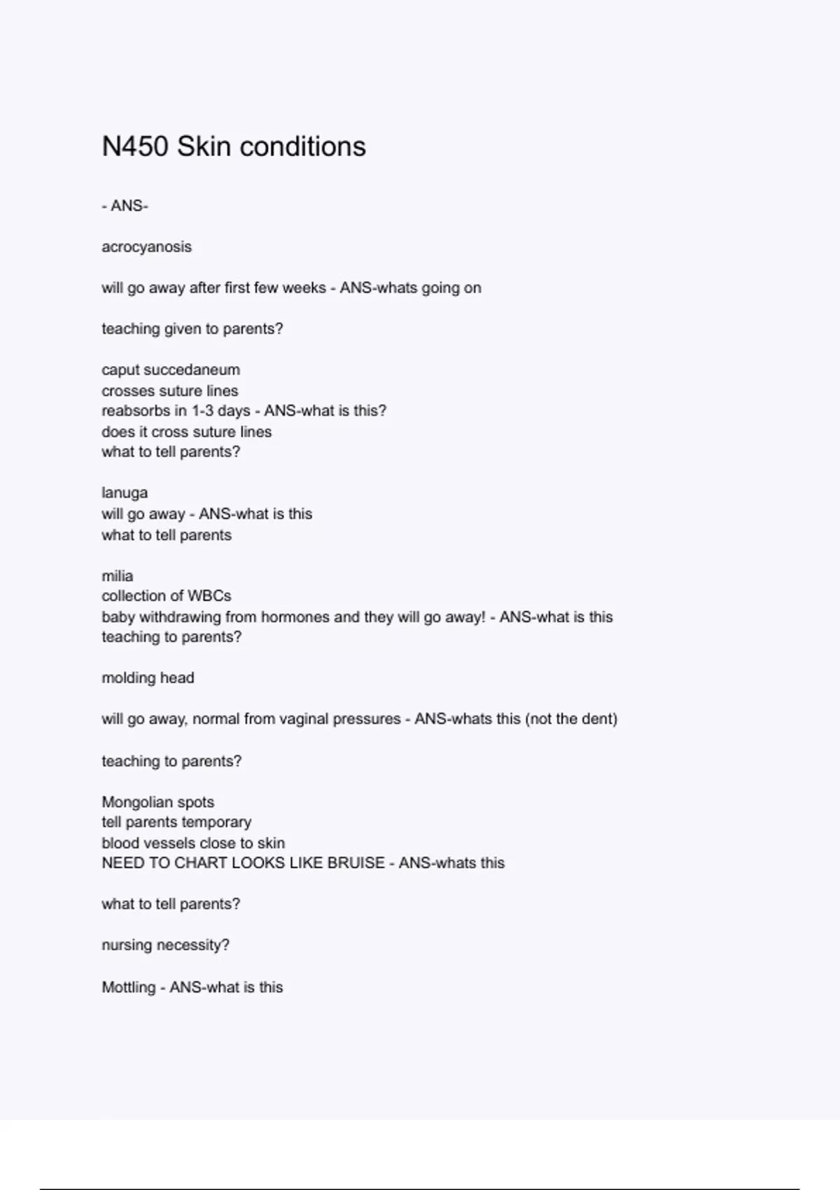 N450 Skin conditions Exam Questions with 100% Correct Answers , Updated ,Guaranteed A+