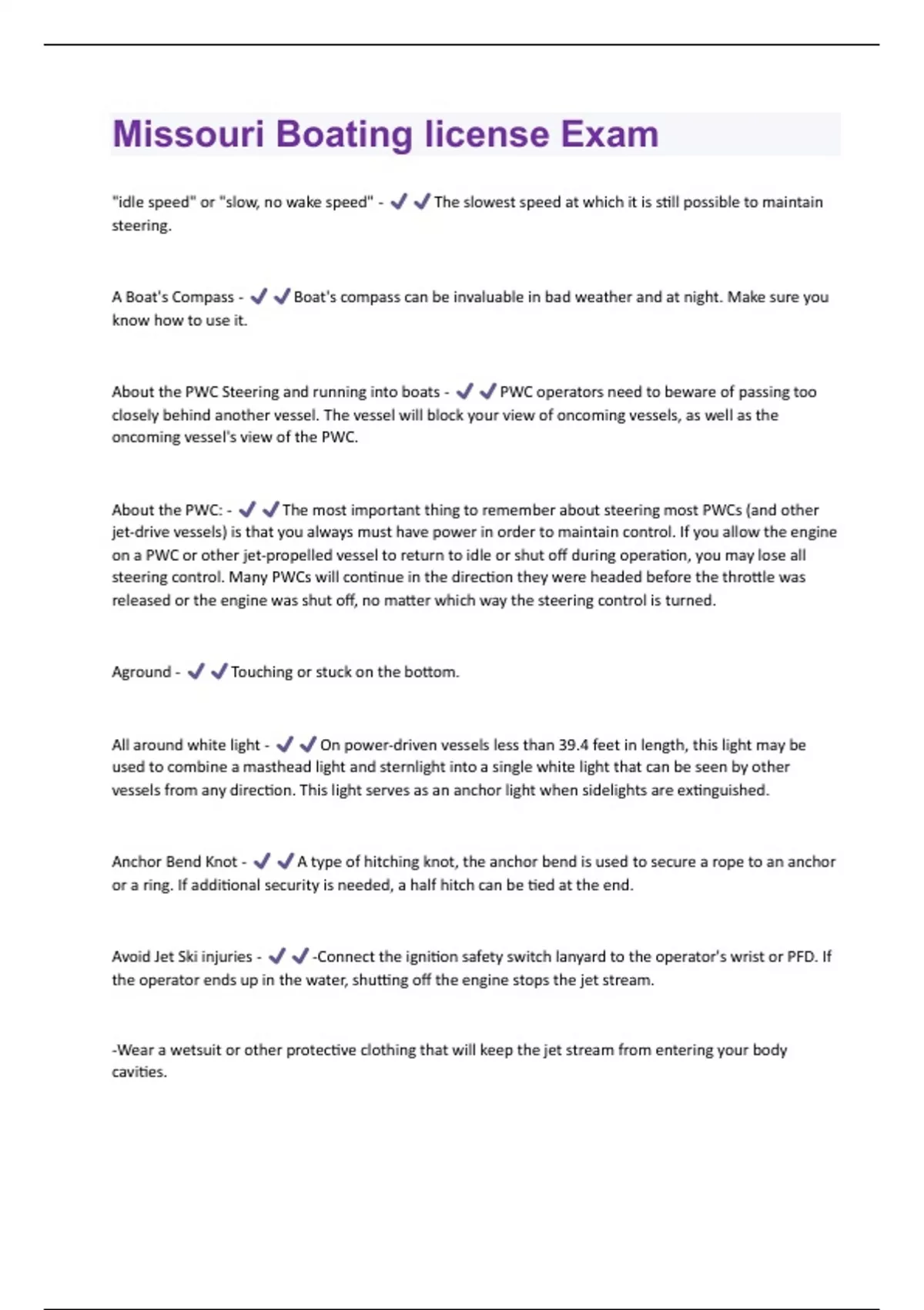 Missouri Boating license Exam Questions And Answers With Verified Solutions Graded A+
