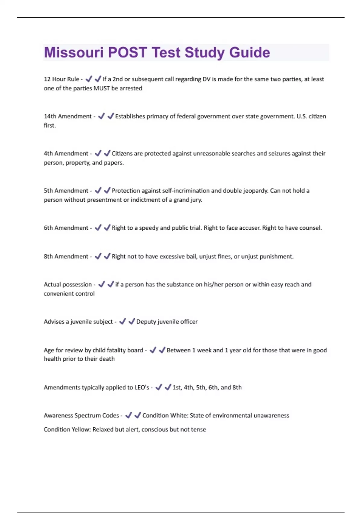 Missouri POST Test Study Guide Questions and Answers Solved 100%