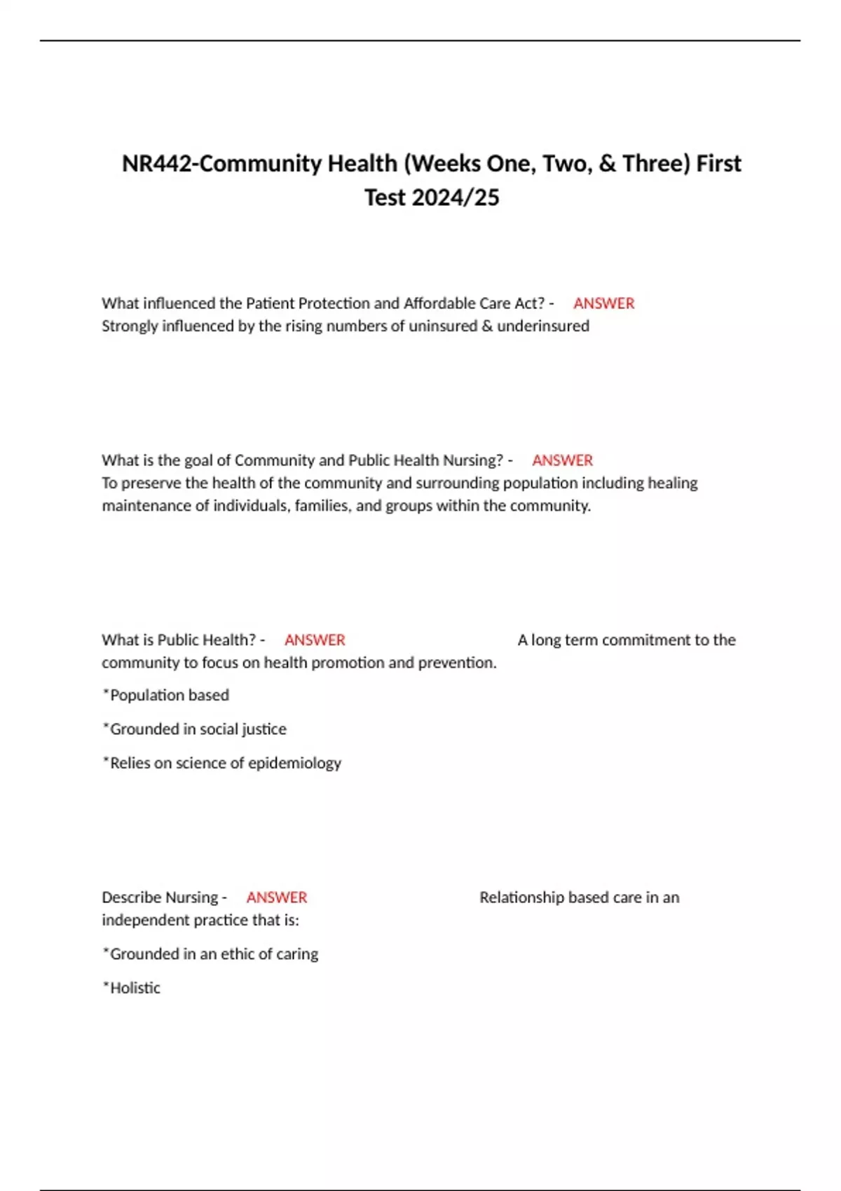 NR442 / NR-442 Exam (Latest Update 2024 / 2025): Community Health Nursing | Complete Guide with Questions and Verified ANSWERs | 100% Correct - Chamberlain