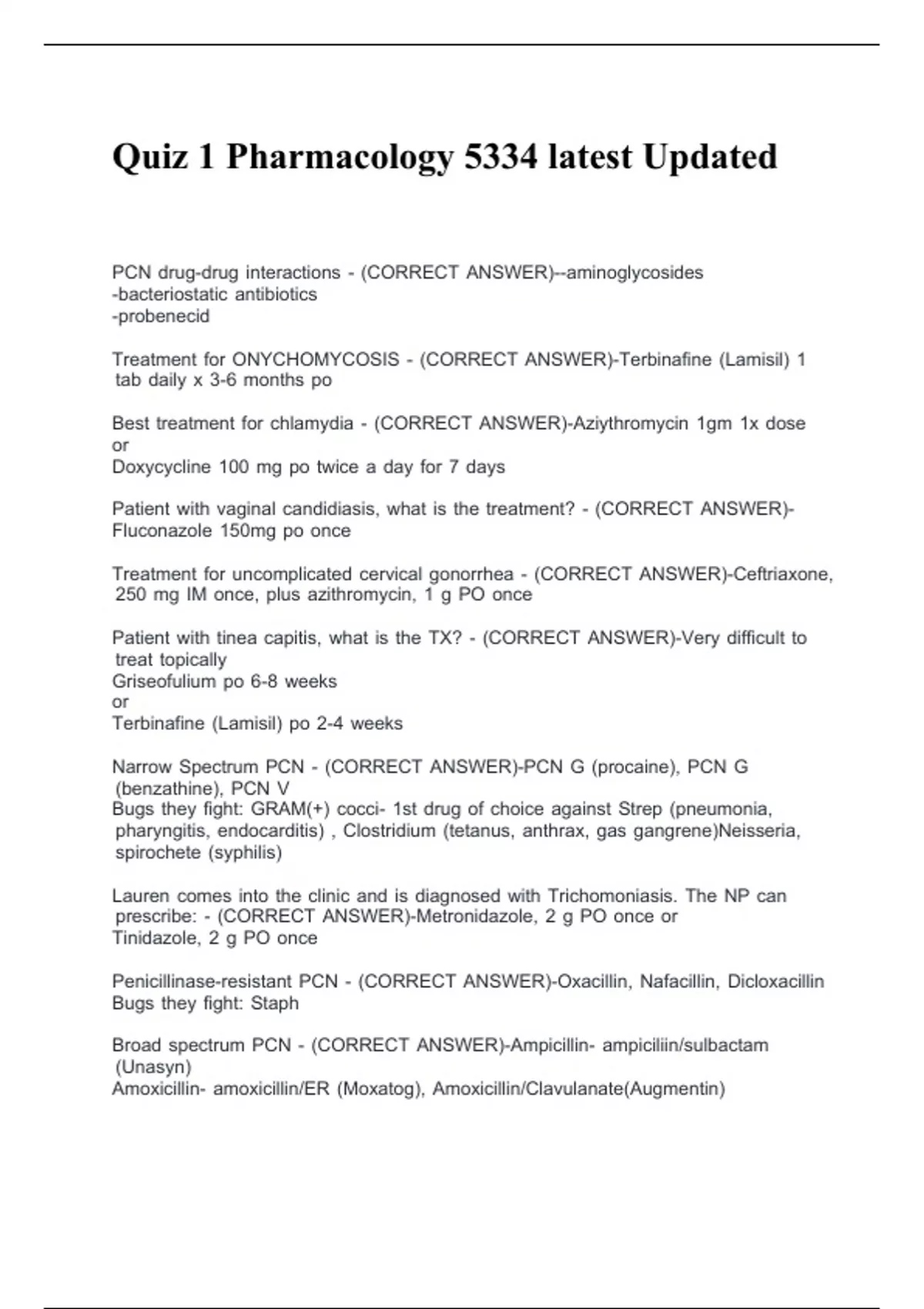 Best Itreatment Ifor Ichlamydia I- I(CORRECT IANSWER)-Aziythromycin I1gm I1x Idose