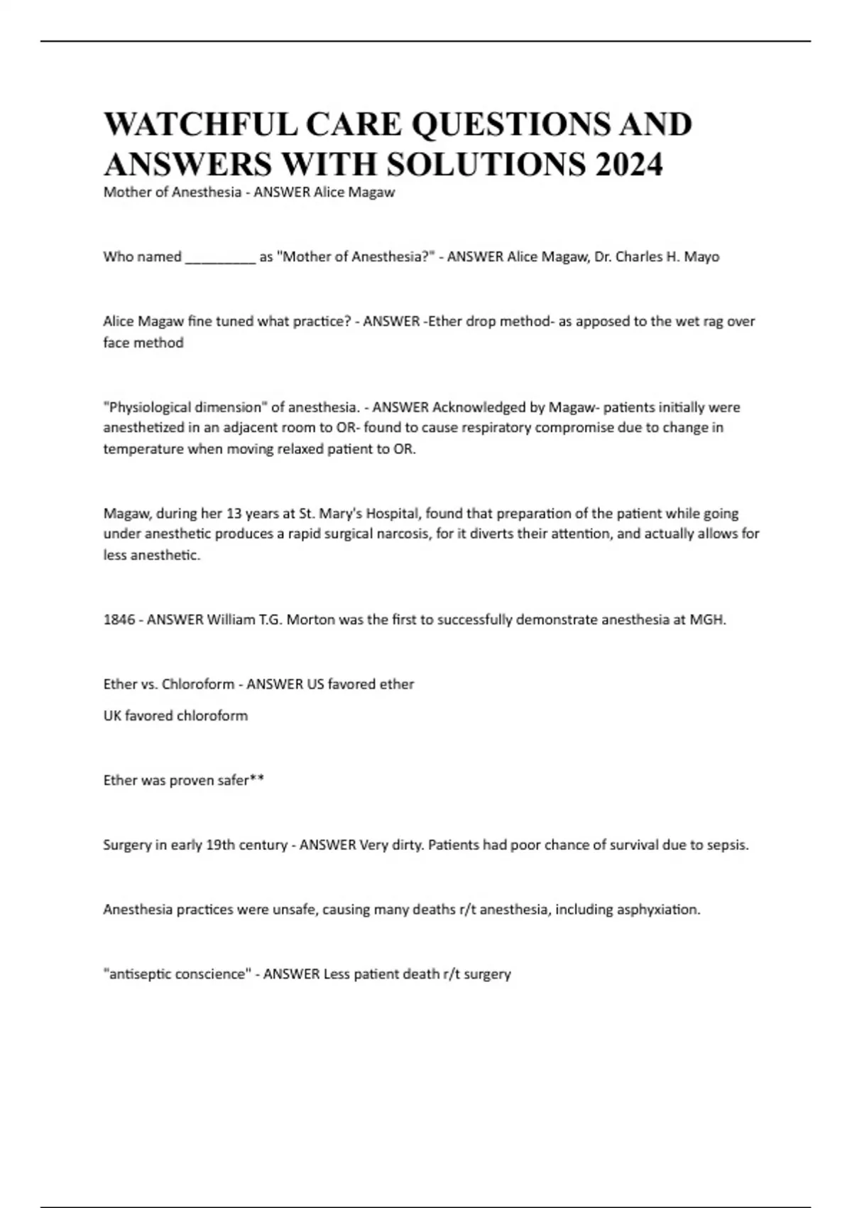 WATCHFUL CARE QUESTIONS AND ANSWERS WITH SOLUTIONS 2024