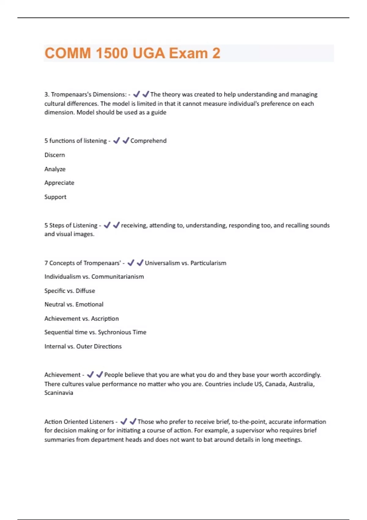 COMM 1500 UGA Exam 2 Questions and Answers Solved 100%