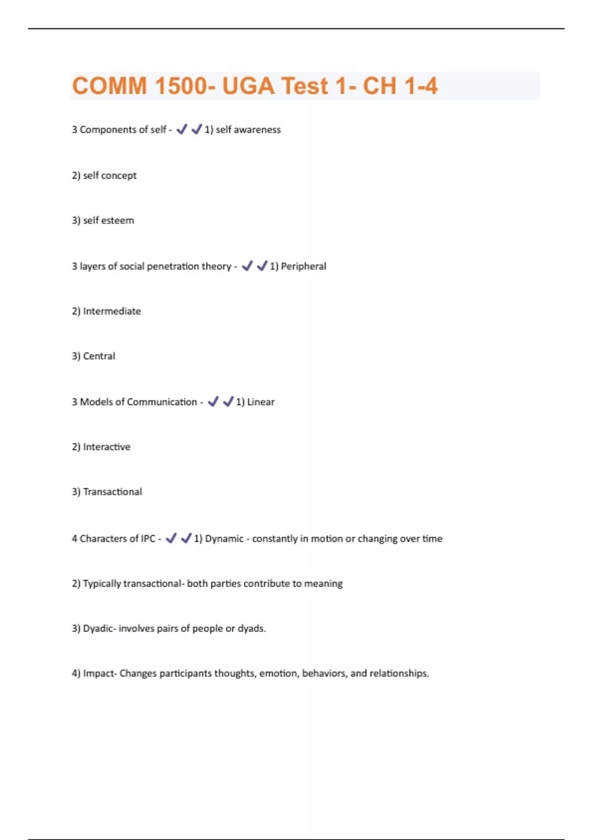 COMM 1500- UGA Test 1- CH 1-4 Questions and Answers Solved 100%