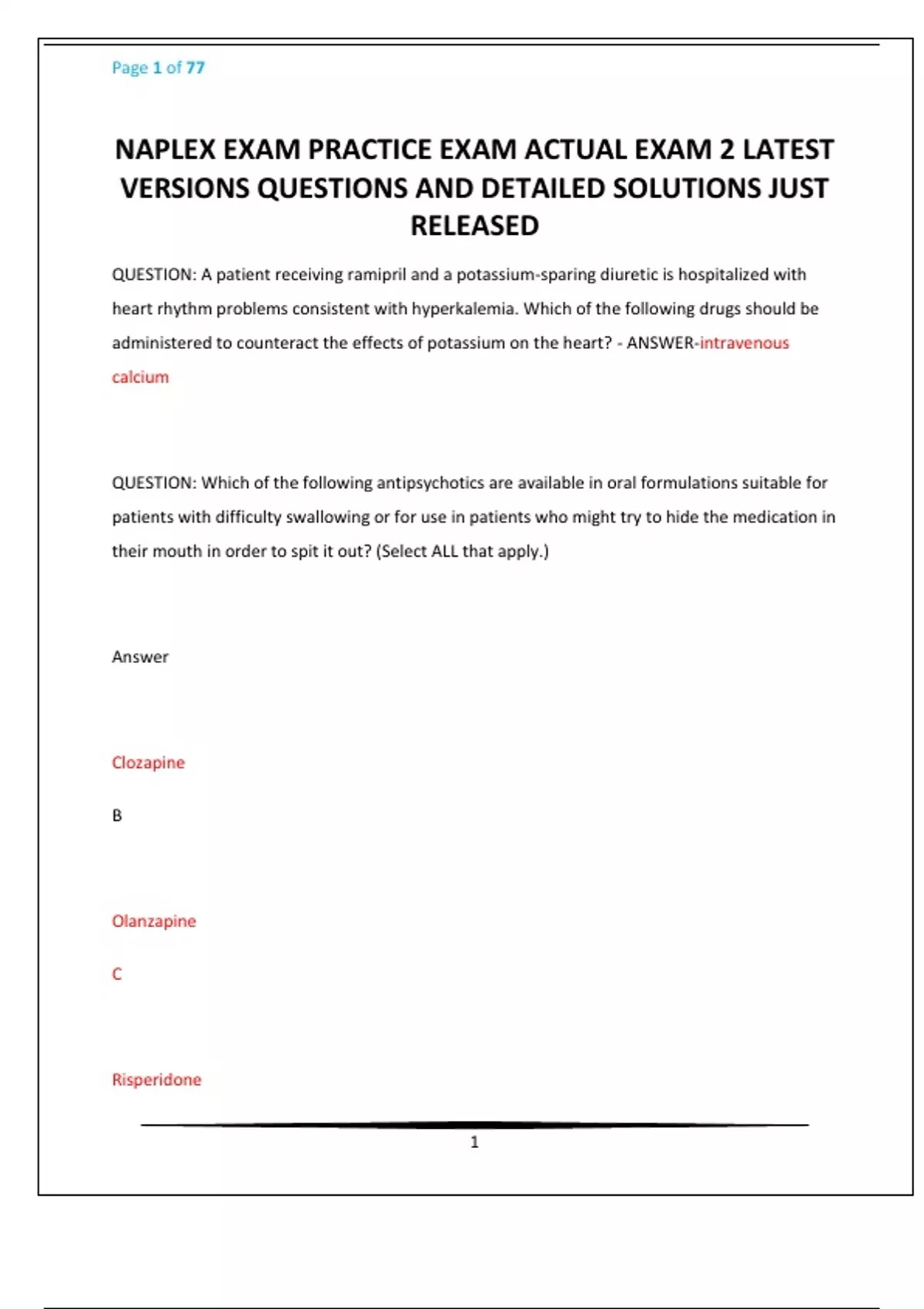 NAPLEX EXAM PRACTICE EXAM & ACTUAL EXAM 2 LATEST VERSIONS QUESTIONS AND DETAILED SOLUTIONS JUST RELEASED
