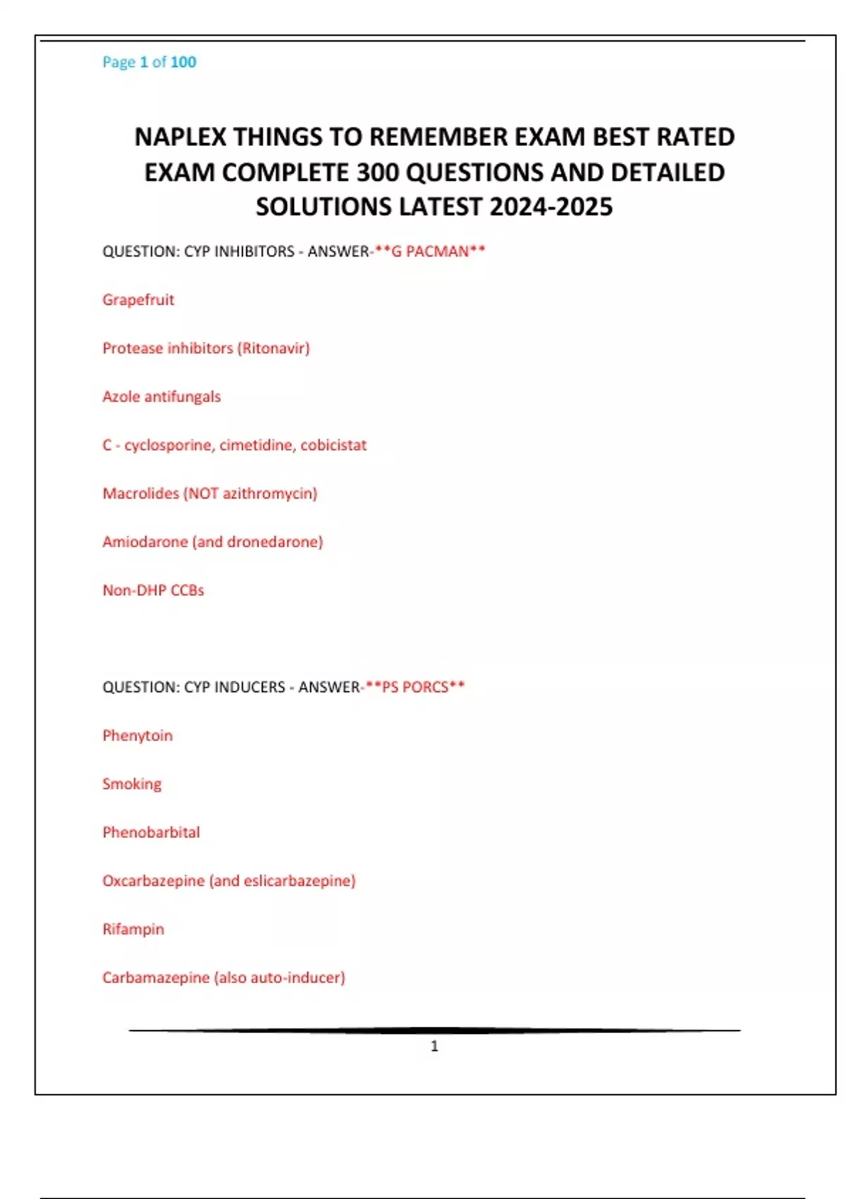 NAPLEX THINGS TO REMEMBER EXAM BEST RATED EXAM COMPLETE 300 QUESTIONS AND DETAILED SOLUTIONS LATEST