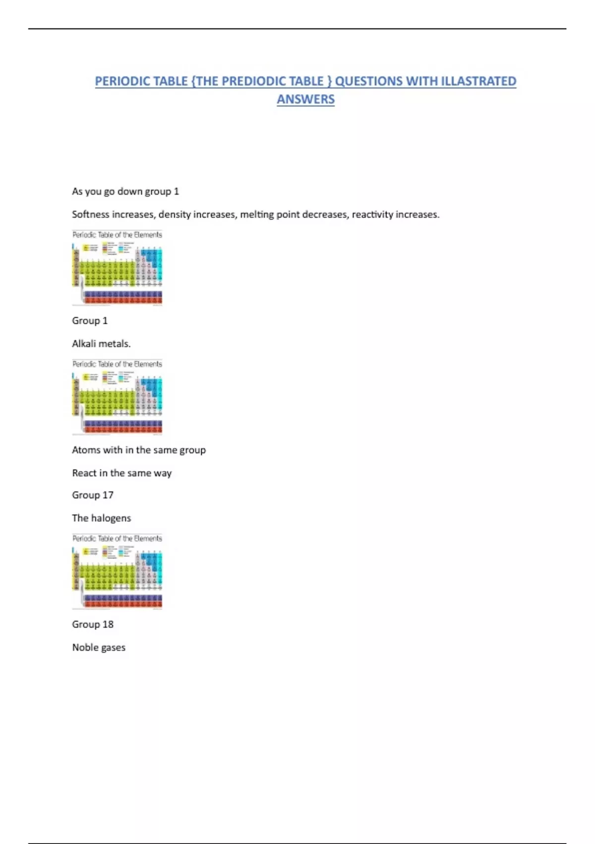PERIODIC TABLE {THE PREDIODIC TABLE } QUESTIONS WITH ILLASTRATED ANSWERS