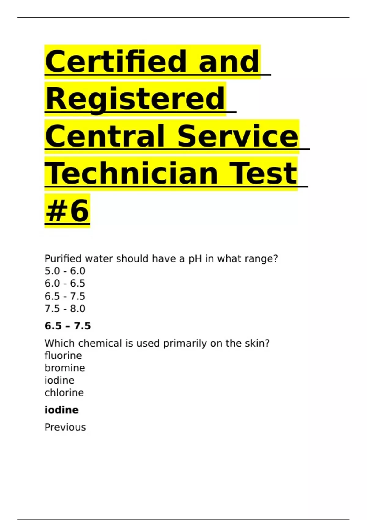 Certified and Registered Central Service Technician Test #6